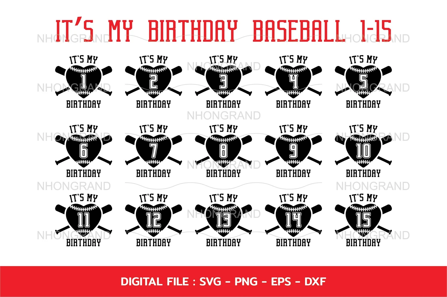 1-15 years birthday it's my birthday boy heart softball baseball svg gift for family t-shirt, Cricut Files, svg, png, eps, dxf, Download