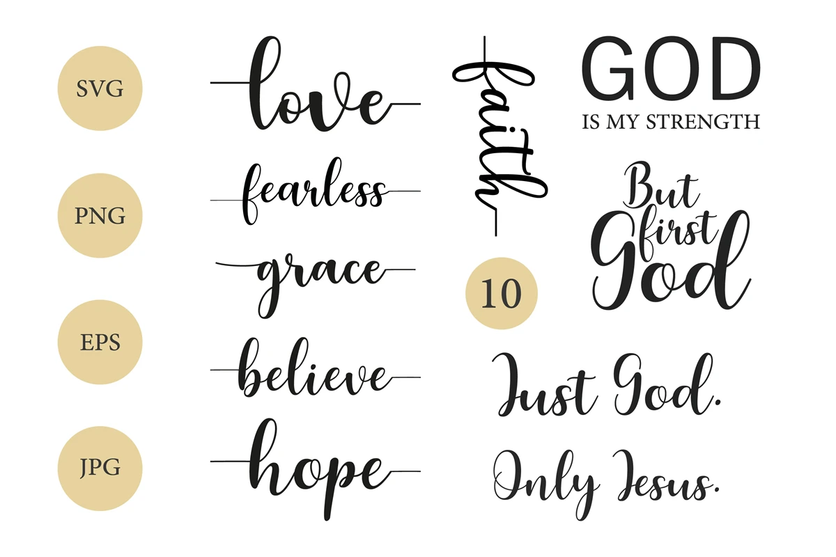 10 Christian SVG Bundle, Word SVG Bundle, Christian Quotes SVG Bundle, Cricut Cut Files, Digital Download