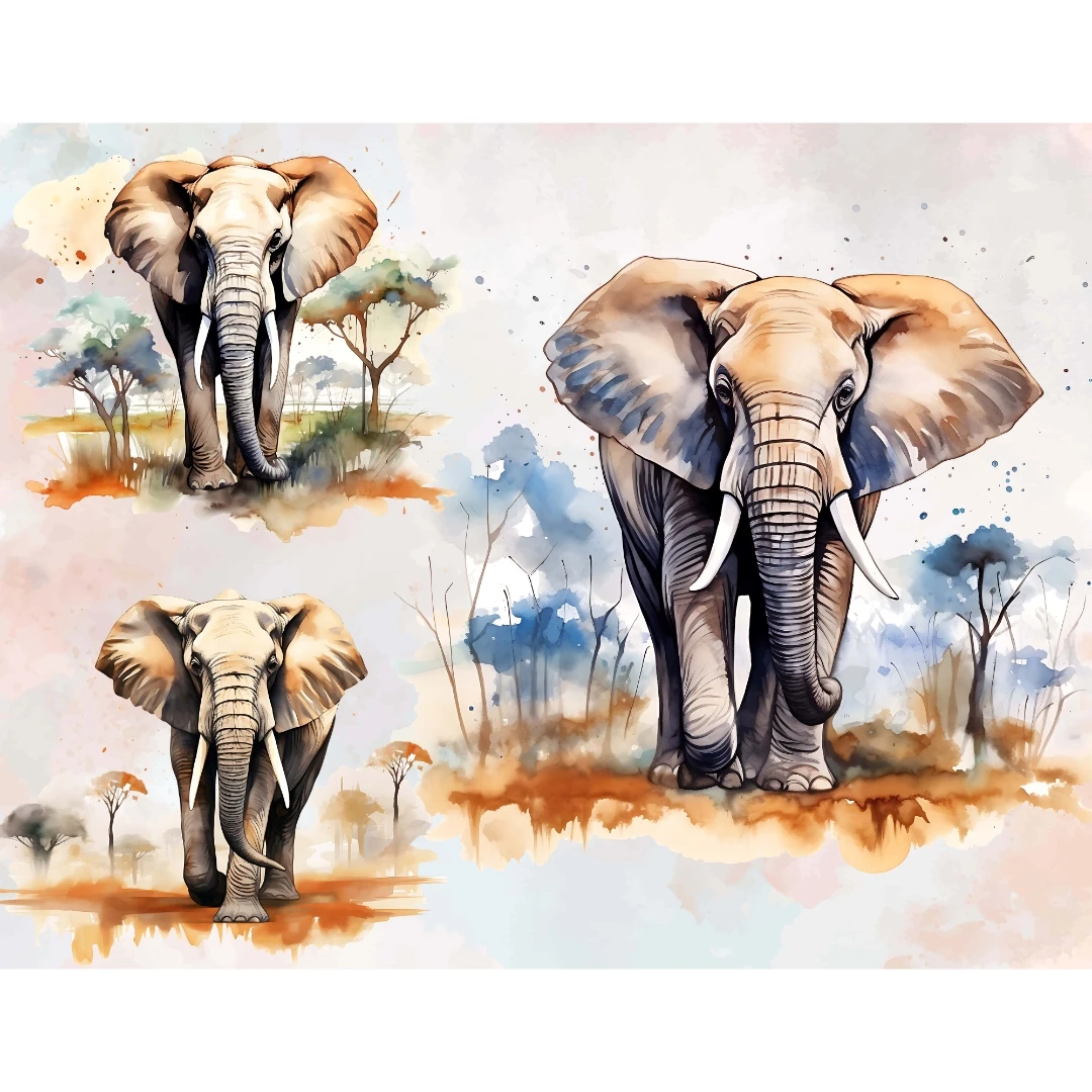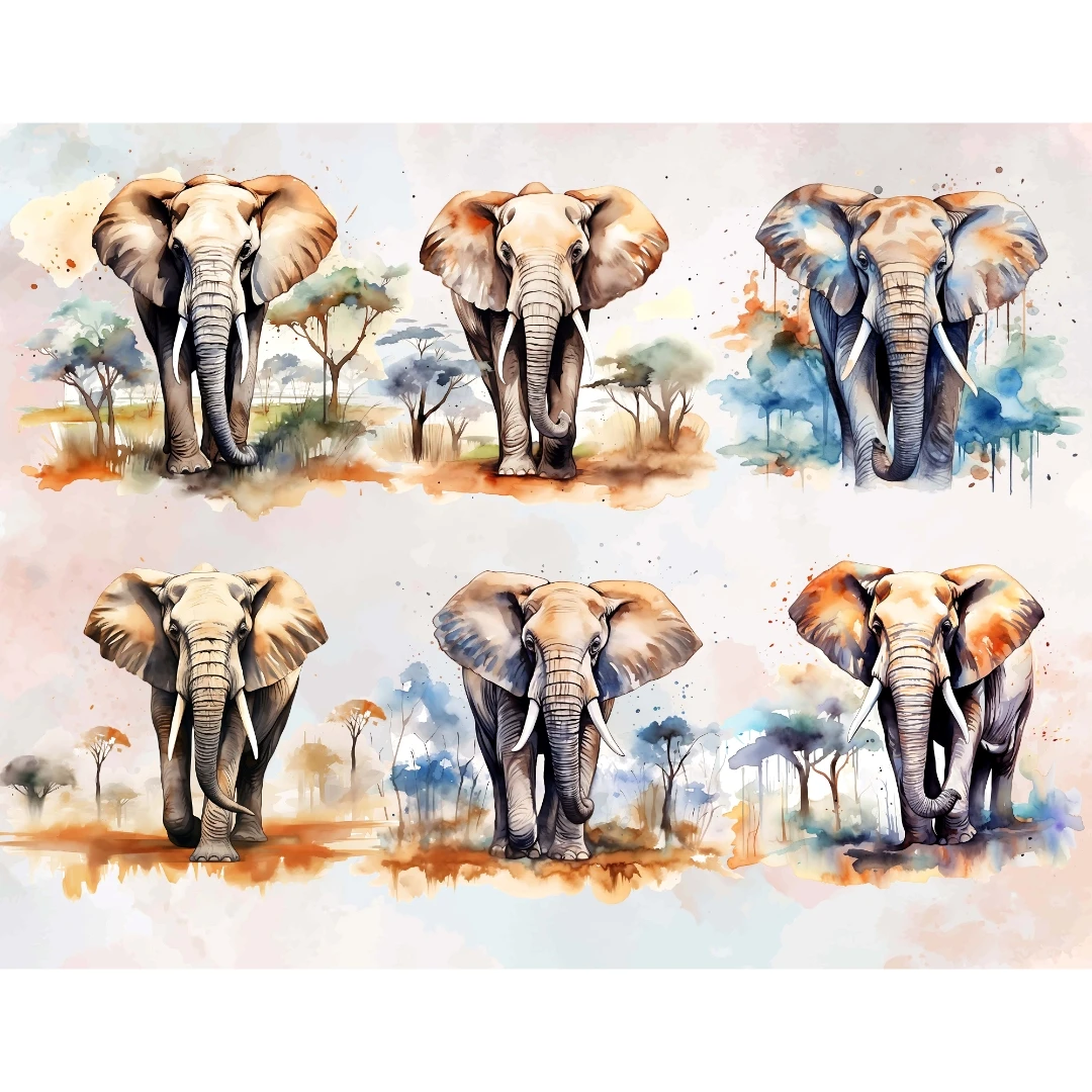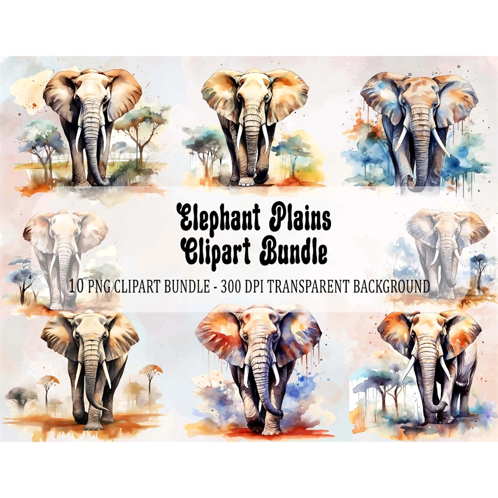 10 Elephant Plains Clipart PNG Bundle, Full Commercial Use