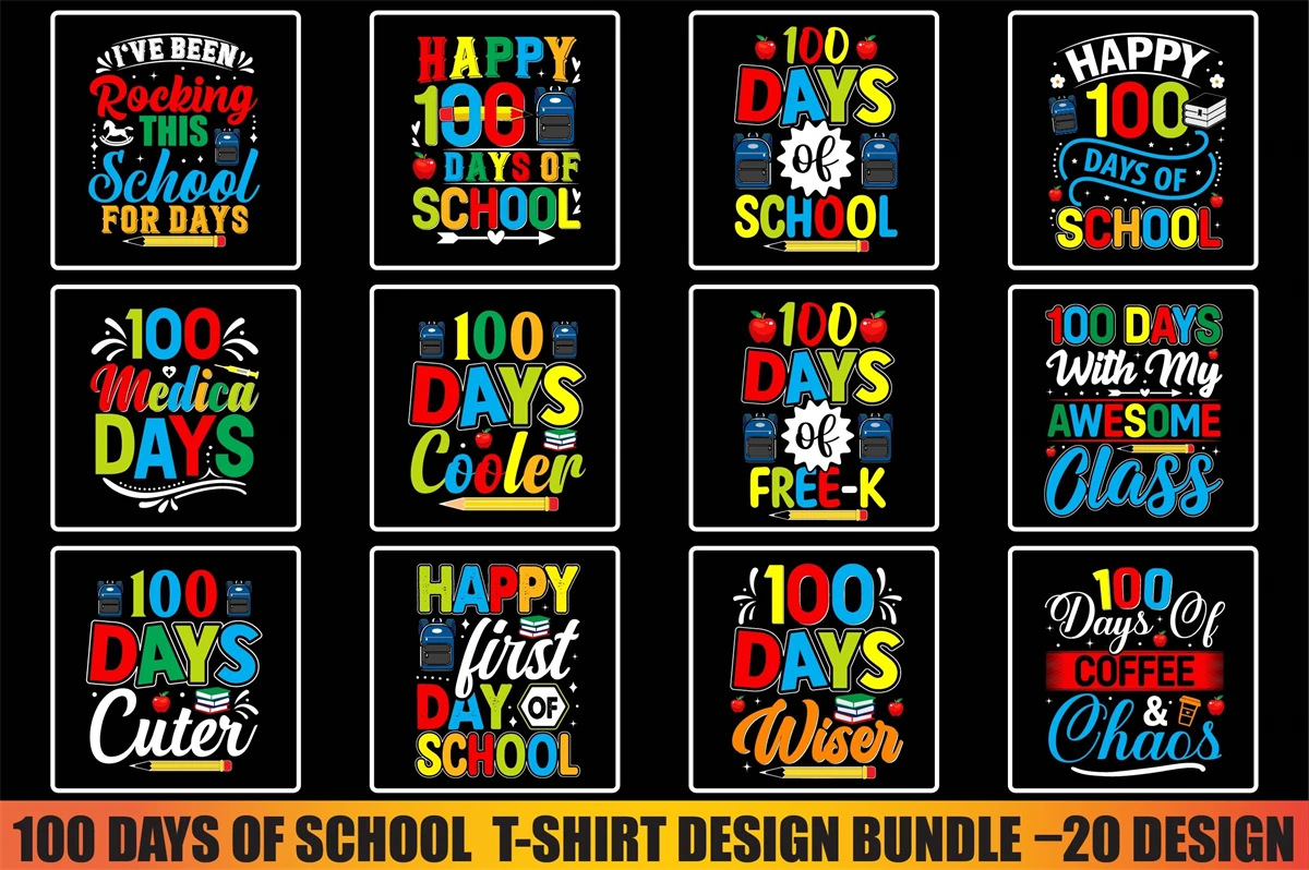 100 Days of School T-Shirt Bundle digital download cutting files for Cricut And Silhouette
