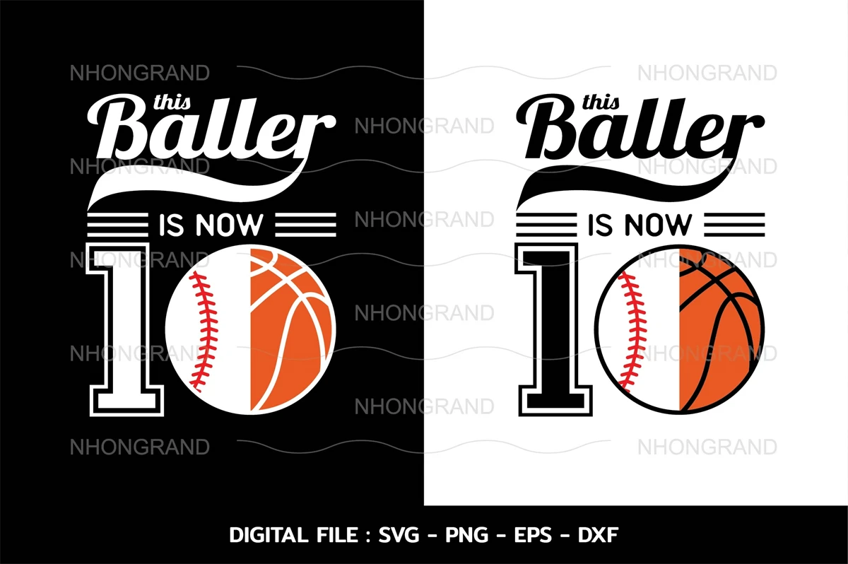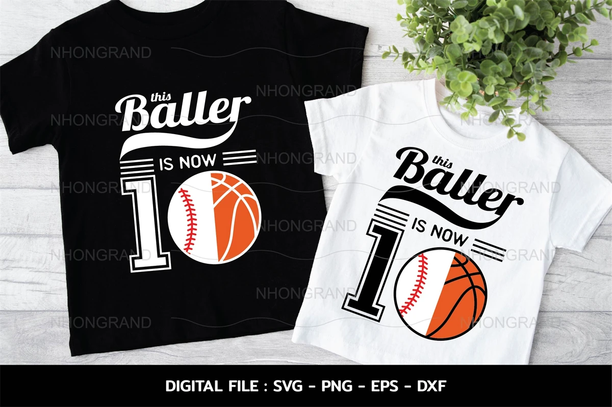 10th birthday this baller is now baseball basketball Sport Boy Girl, lover gift t-shirt, Cricut Files, svg, png, eps, dxf, Instant Download