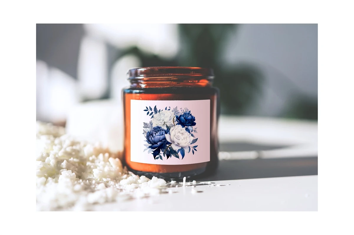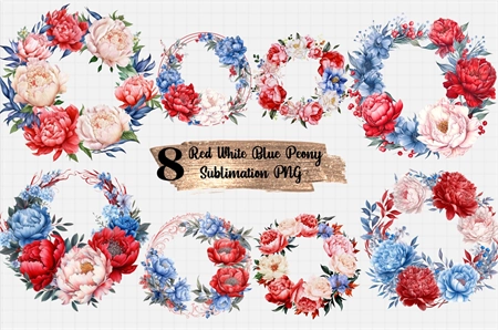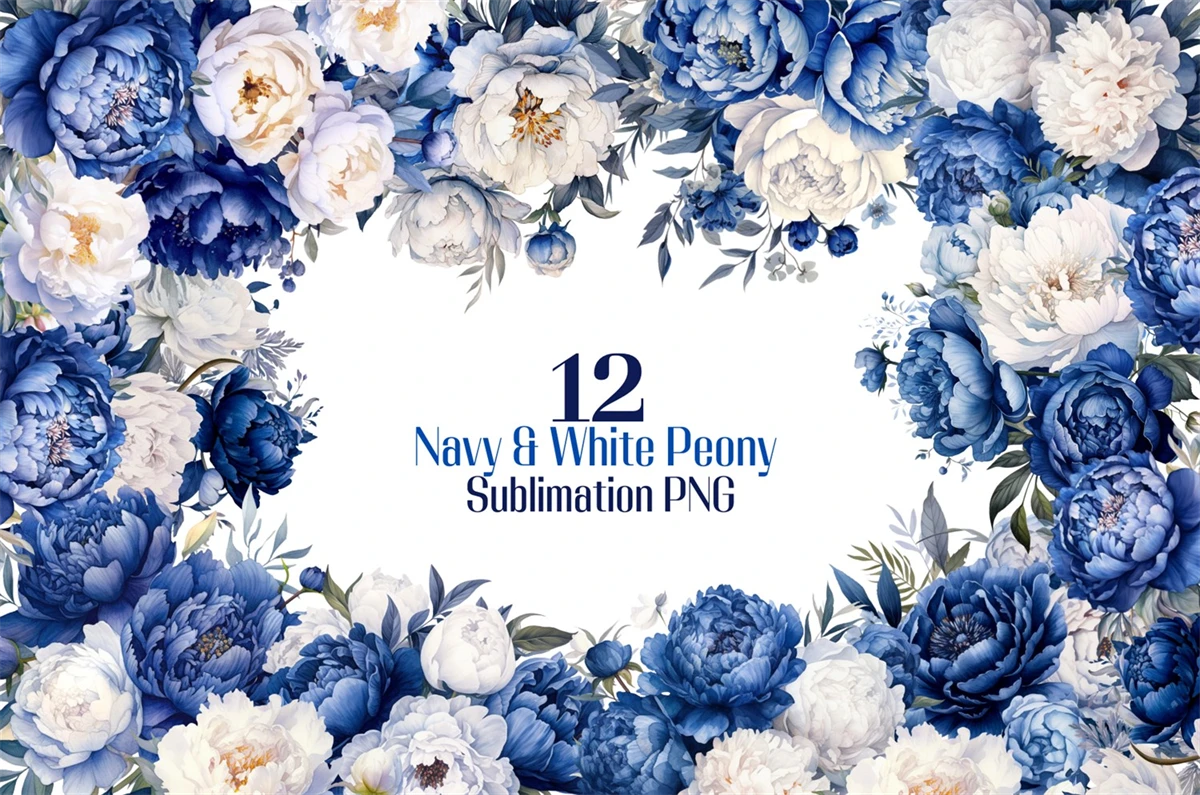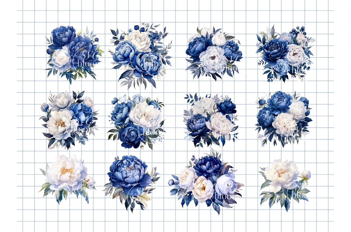 12 Navy & White Peony Flower Bouquet Sublimation PNG Clipart