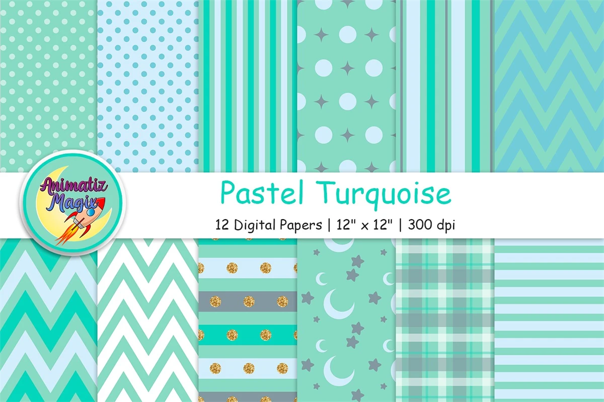 12 high resolution JPG Pastel Turquoise Digital Papers.