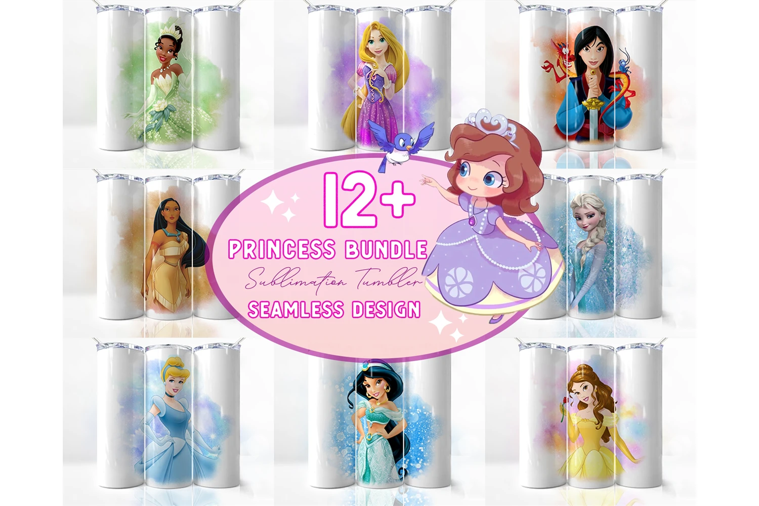 12 Princess Seamless 20oz Tumbler Bundle, Cartoon Character