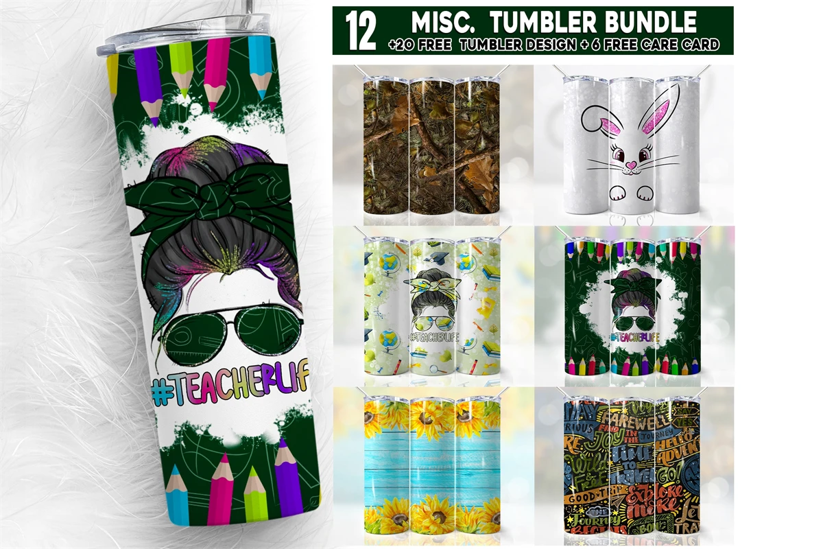 12 Tumbler Bundle, 20oz Teacher Life Skinny Tumbler Wrap Png