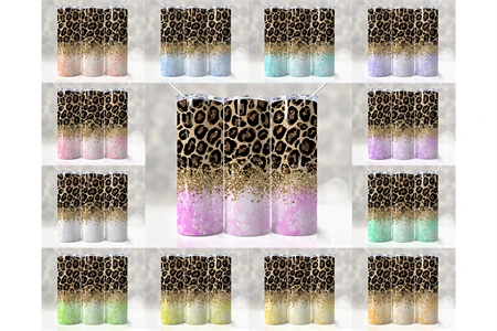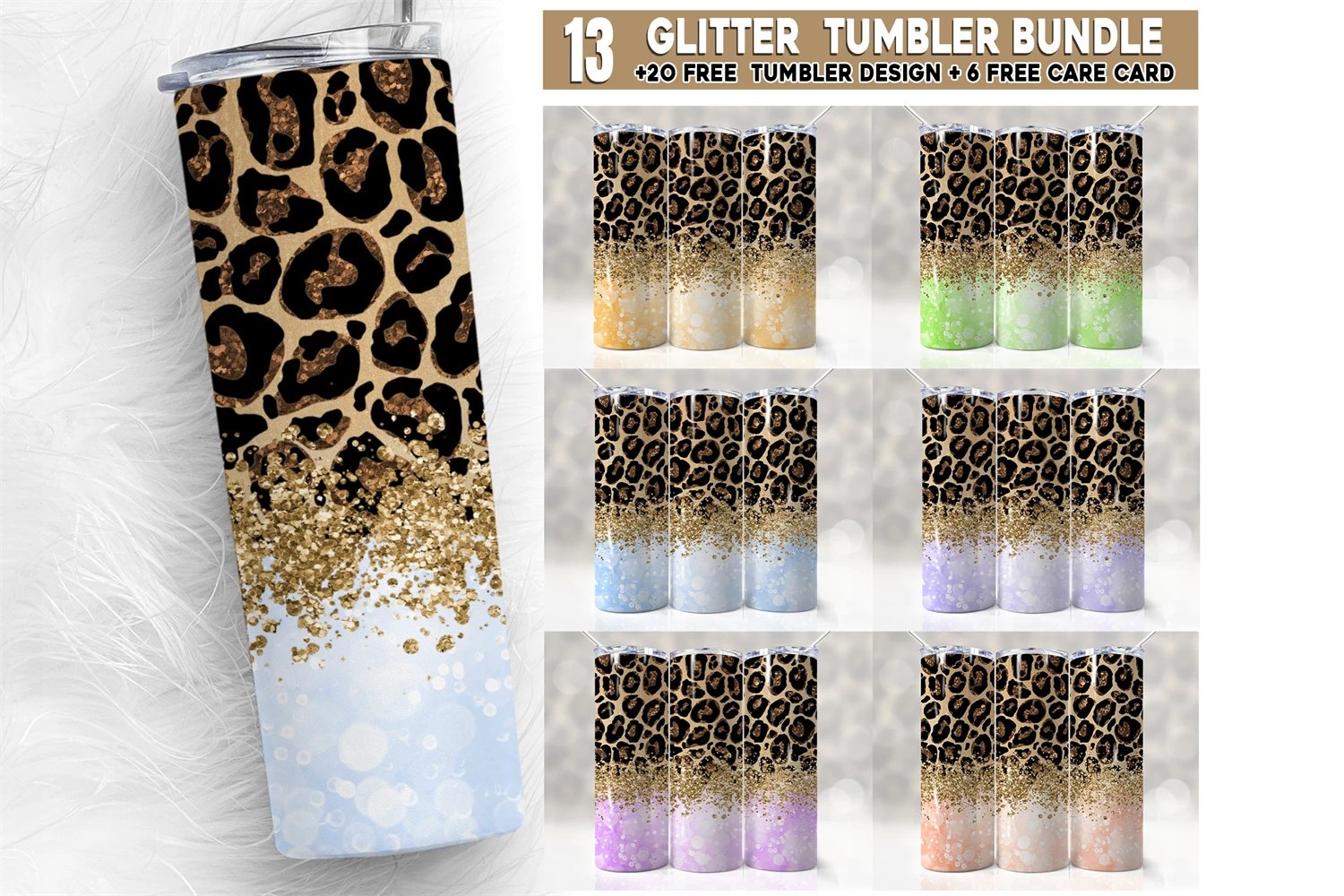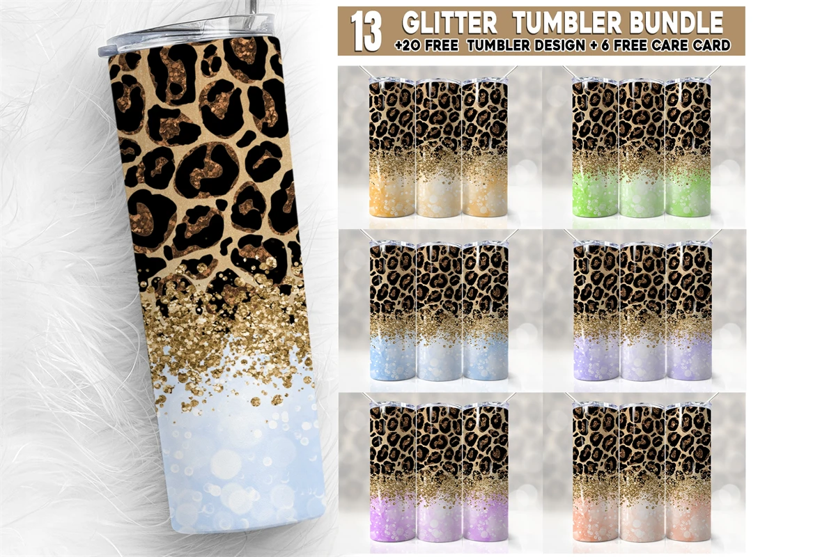 13 Leopard Glitter Bundle, 20oz Skinny Tumbler Wrap Png