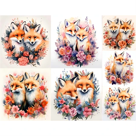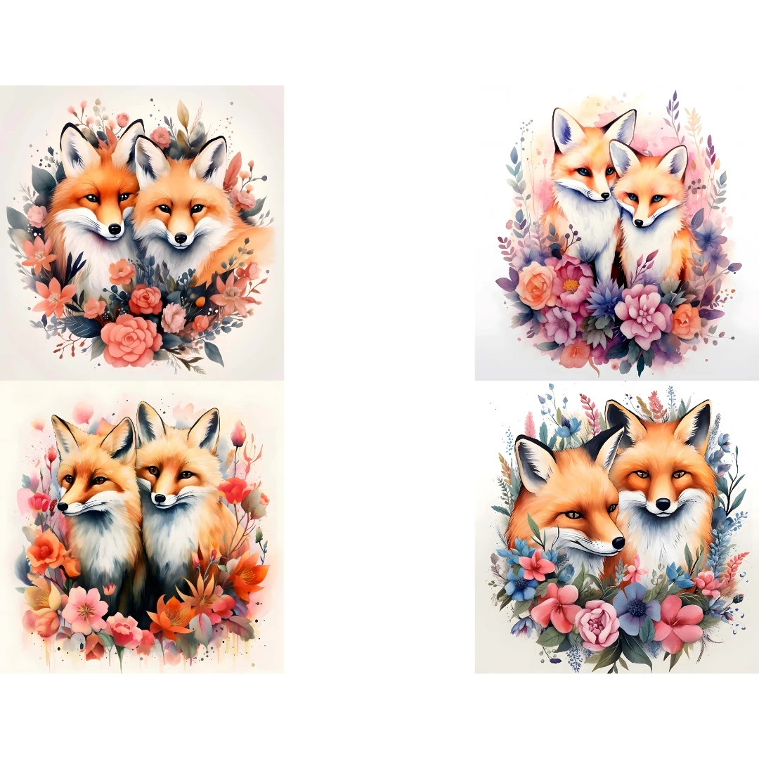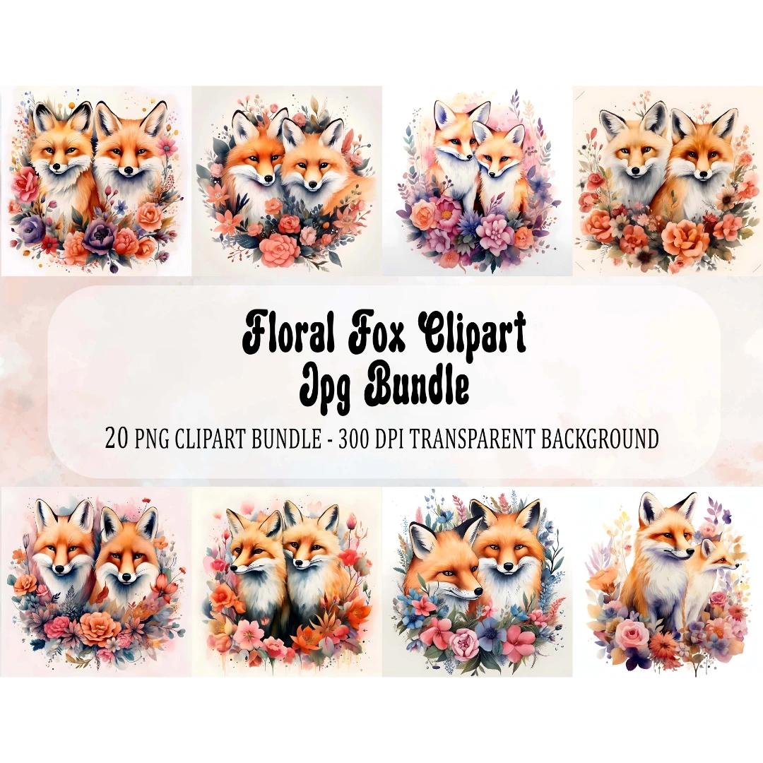 15 Floral Foxes Clipart JPG Bundle, Full Commercial Use