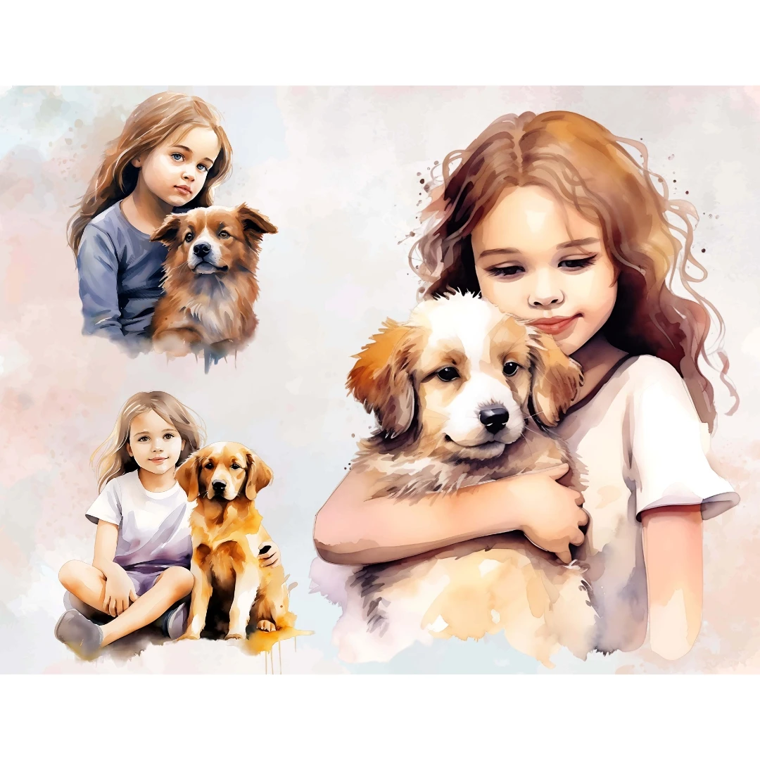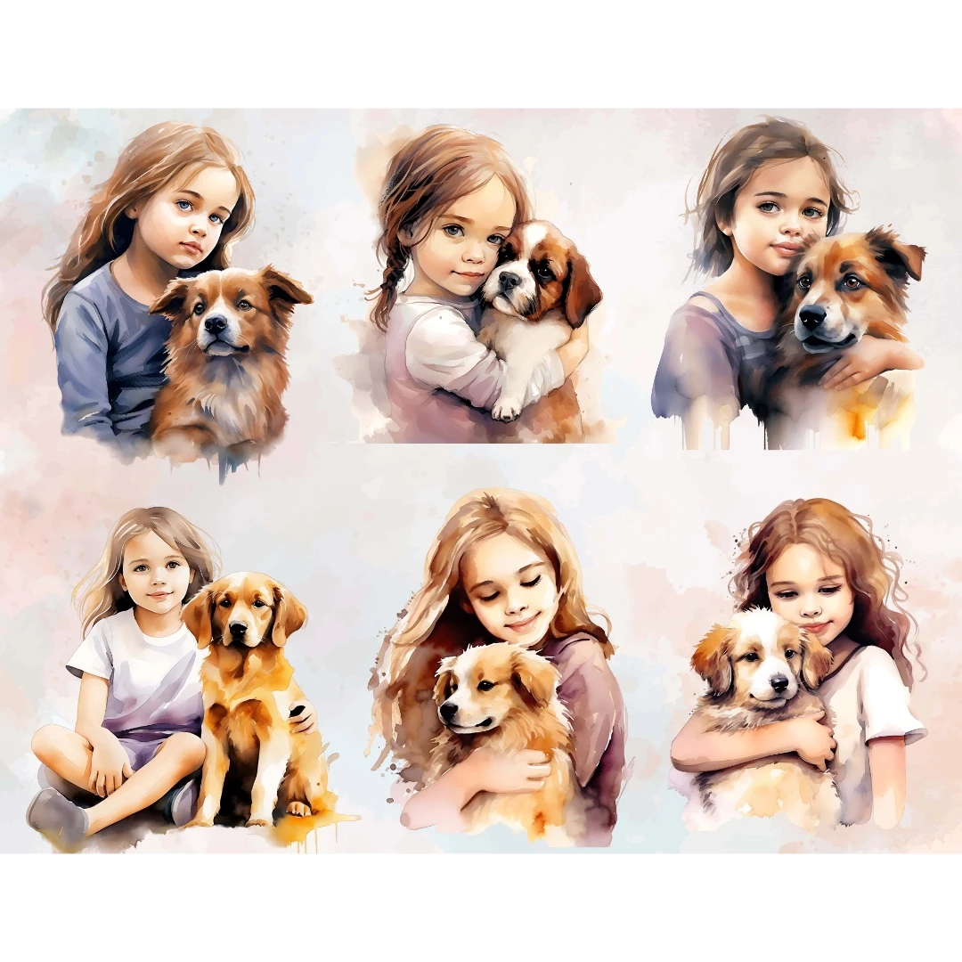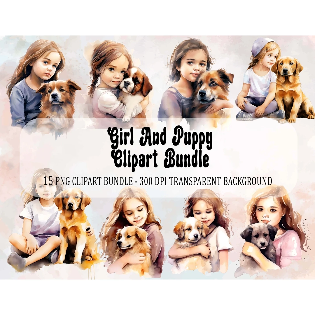 15 Girl and Puppy Clipart PNG Bundle, Full Commercial Use