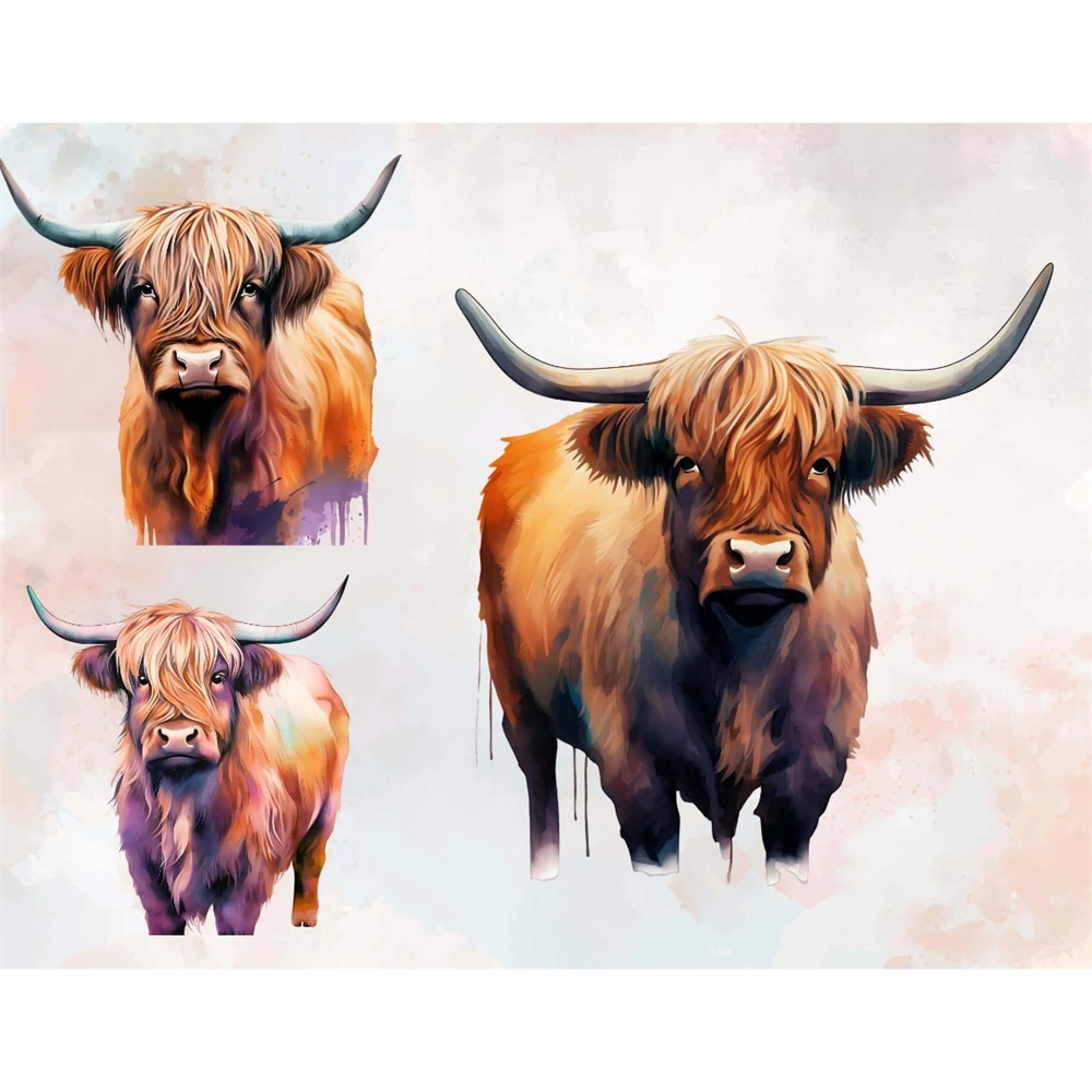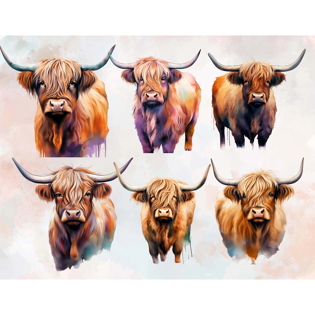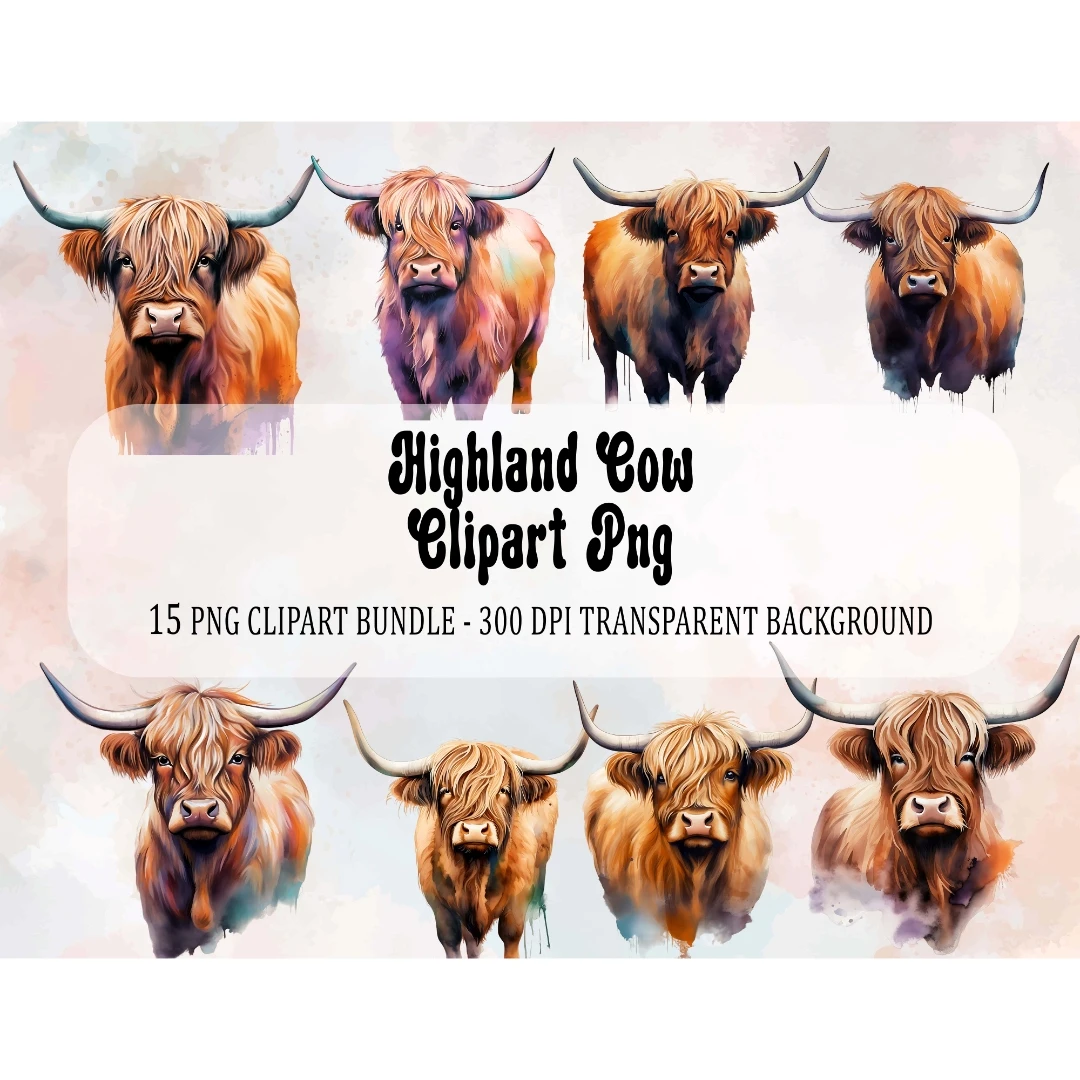 15 Highland Cow Clipart PNG Bundle, Full Commercial Use,