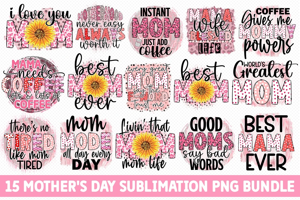 15 Mother's Day Sublimation PNG Bundle was created by hand and then converted to a digital file.