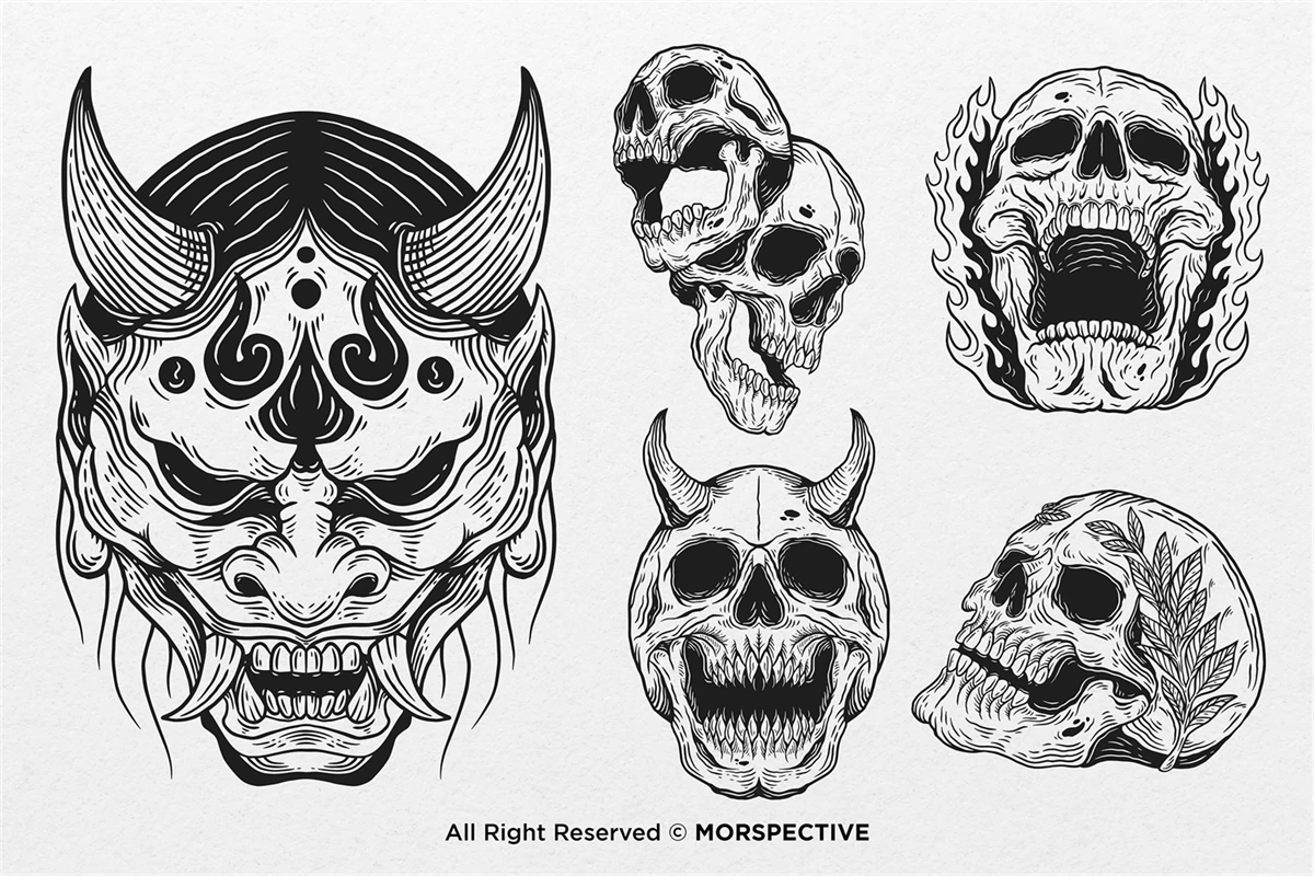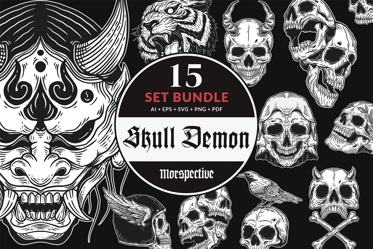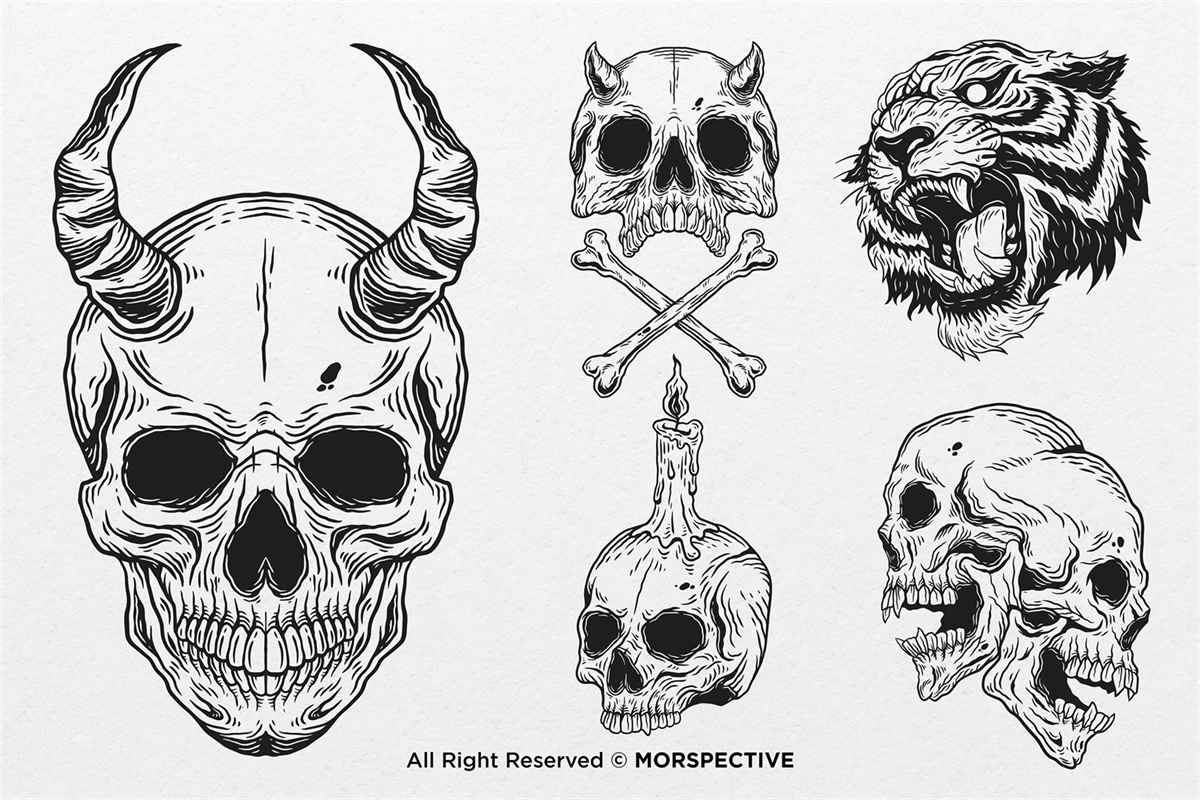 15 Set Bundle The Dark Skull Art Bone Horror Tattoo Beast