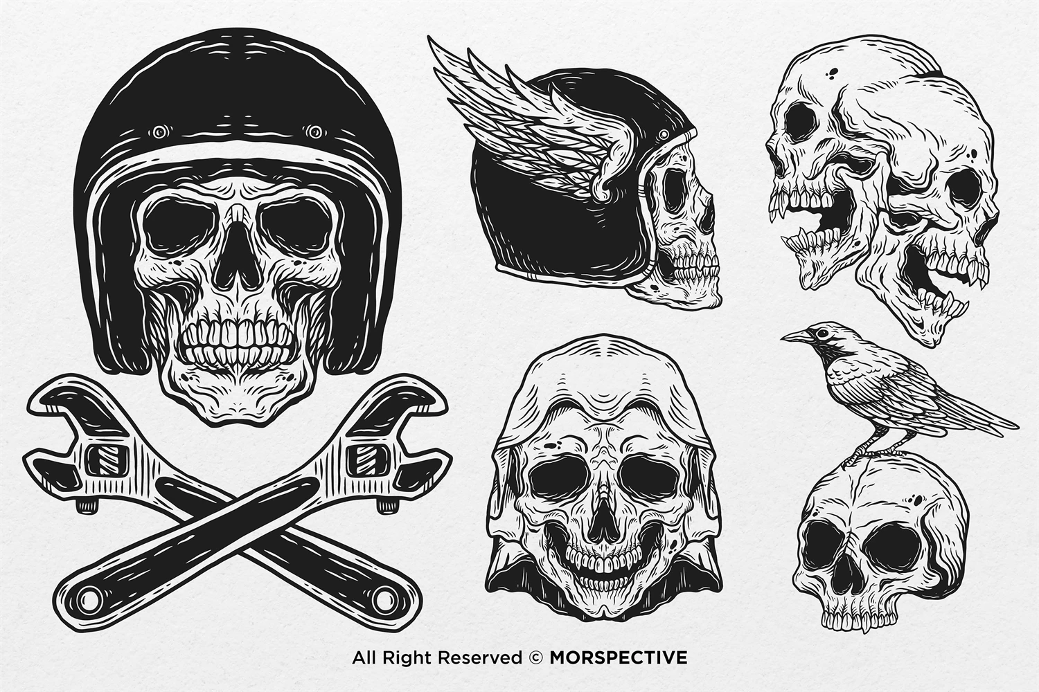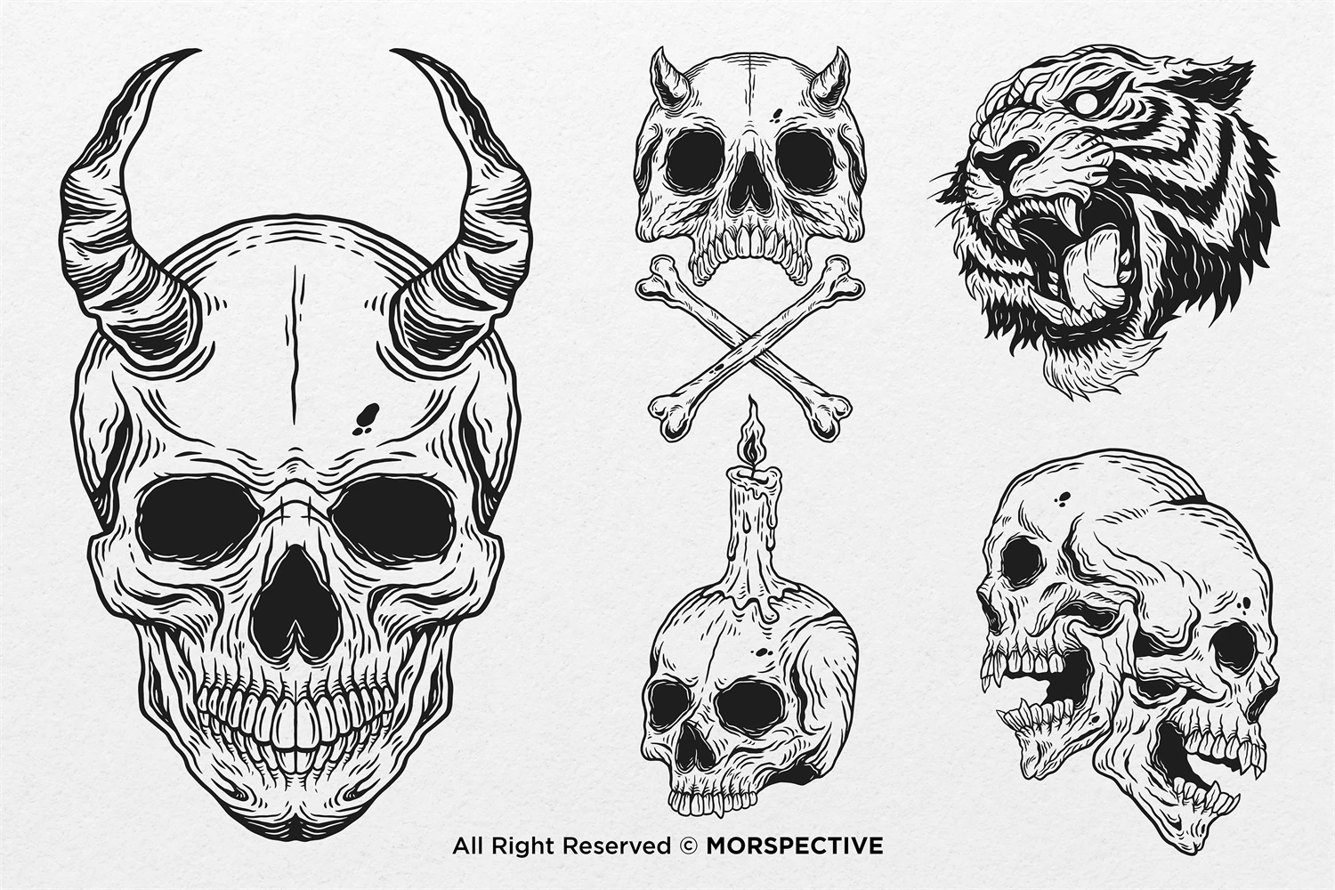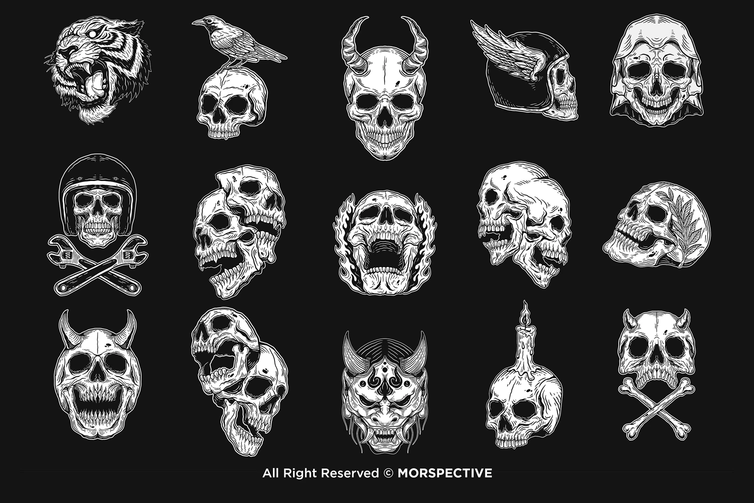 15 Set Bundle The Dark Skull Art Bone Horror Tattoo Beast