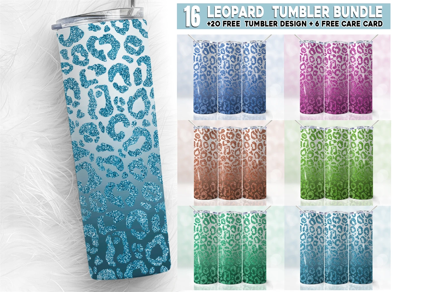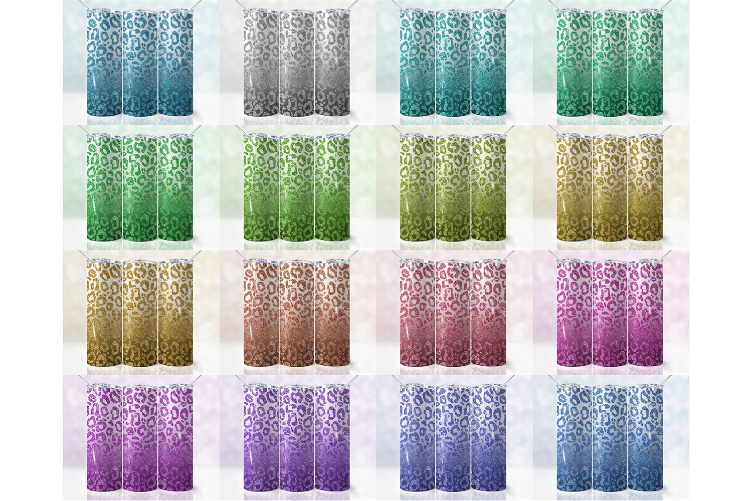 16 Leopard Glitter Bundle, 20oz Skinny Tumbler Wrap Png