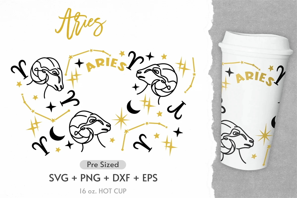 16oz Aries Starbucks Hot Cup Svg, Astrology Women Svg, Png
