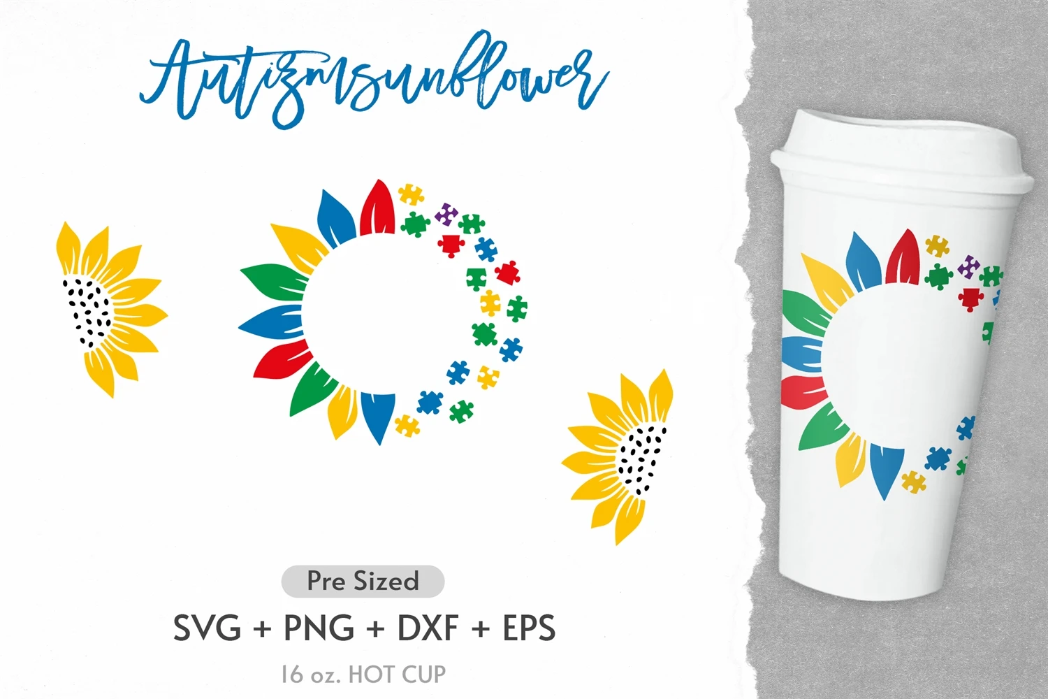 16oz Autism Starbucks Hot Cup Svg, Sunflower Svg, Autism Svg