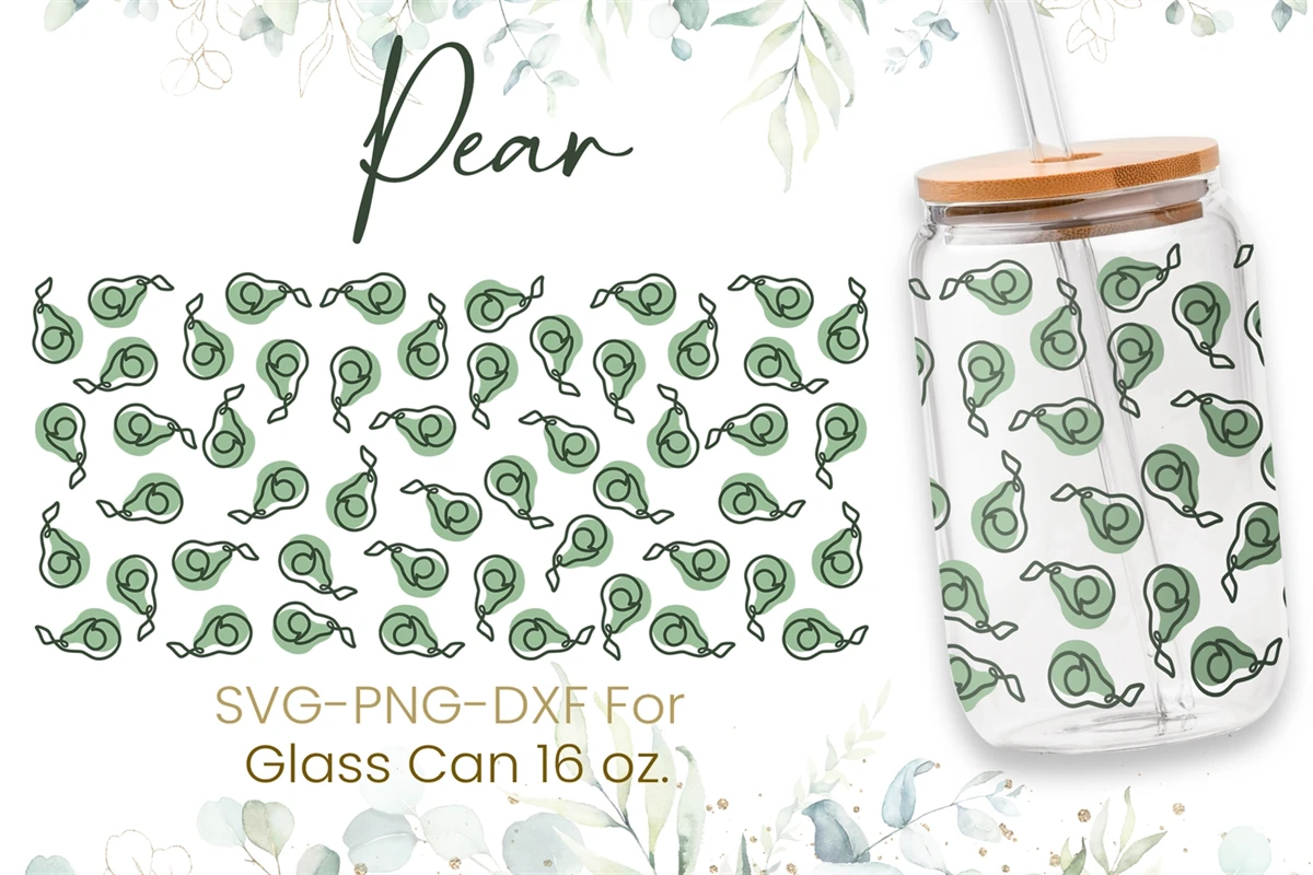16oz Avocado Libbey Glass Can Svg, Pear Glass Can Wrap Svg