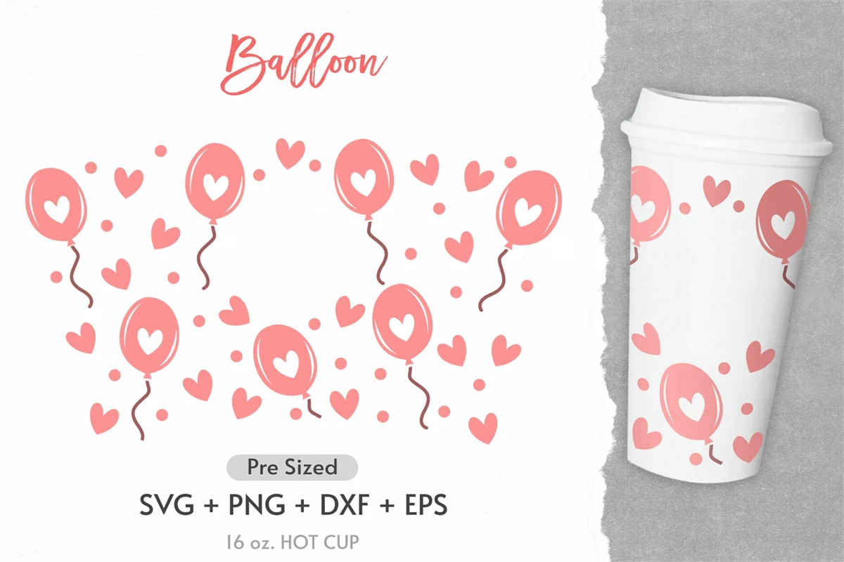 16oz Balloon Hearts Starbucks Hot Cup Svg, Hearts Svg, Png