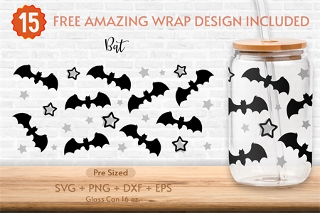 16oz Bat Libbey Glass Can Svg,Spooky Vibes,Halloween Cutfile