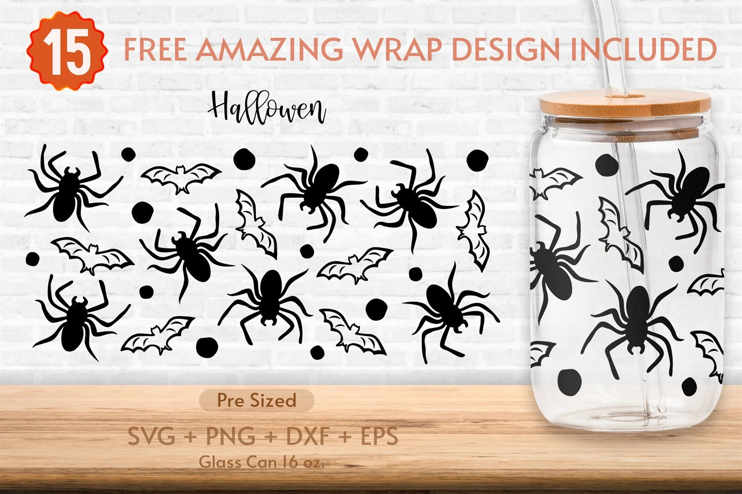 16oz Bat & Spider Libbey Glass Can Svg, Spooky Vibes, Spider