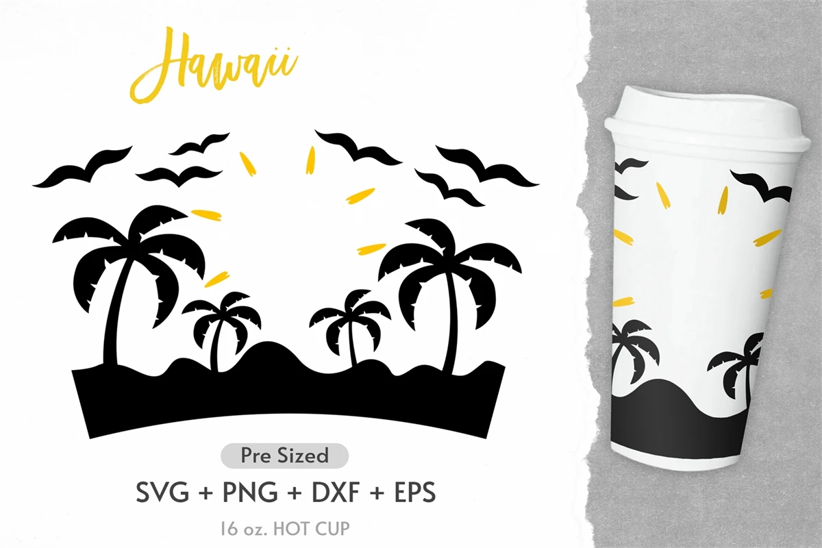 16oz Beach Starbucks Hot Cup Svg, Full Wrap Svg, Ocean Svg,