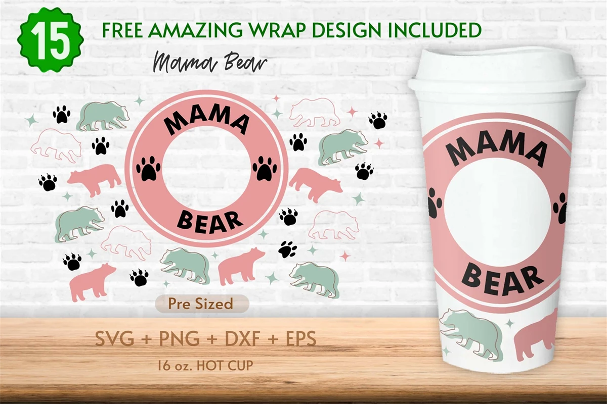 16oz Bear Mama Starbucks Hot Cup Svg, Mama Svg, Bear Svg,Mom