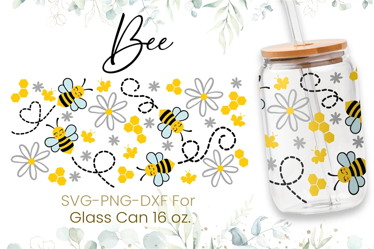 16oz Bee Libbey Glass Can Svg, Honeycomb Svg, Beer Glass Can