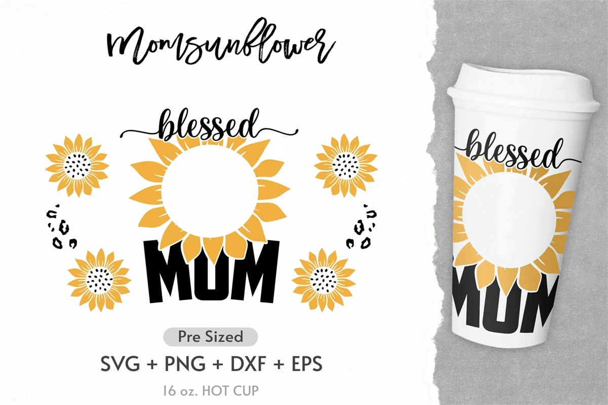 16oz Blessed Mom Starbucks Hot Cup Svg, Sunflower Svg, Png