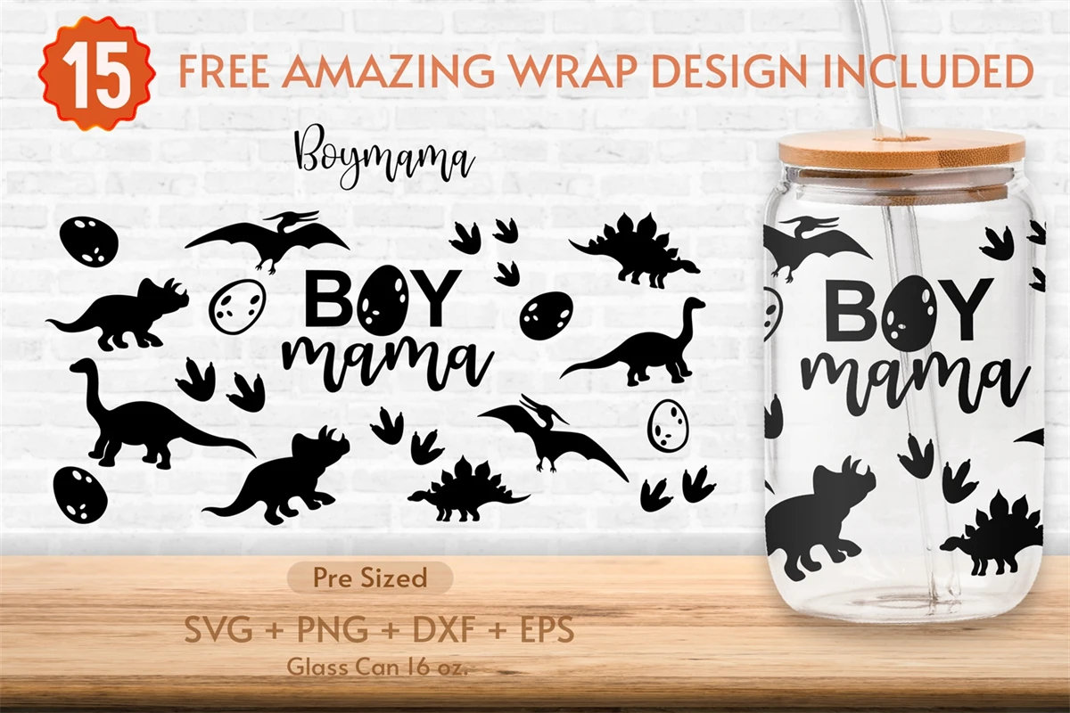16oz Boy Mama Libbey Glass Can Svg, Cow Glass Can Wrap Svg