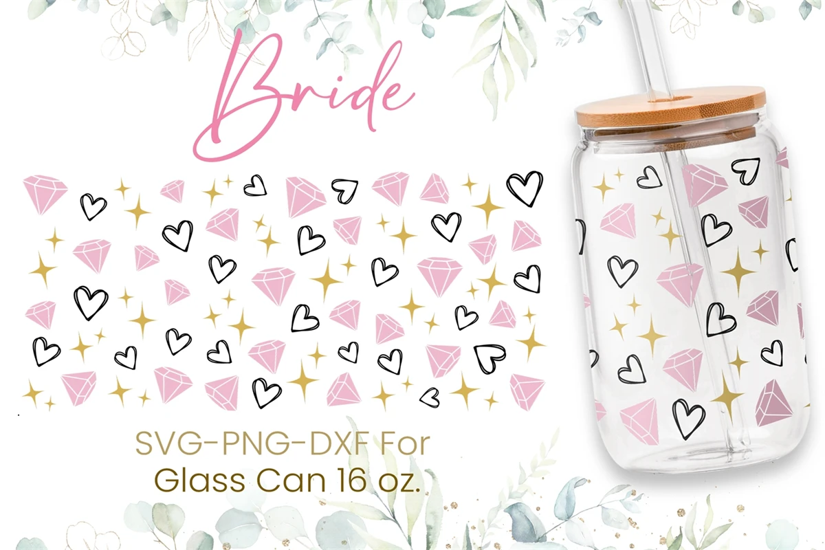 16oz Bride Team Libbey Glass Can Svg,Wedding Party Glass Can