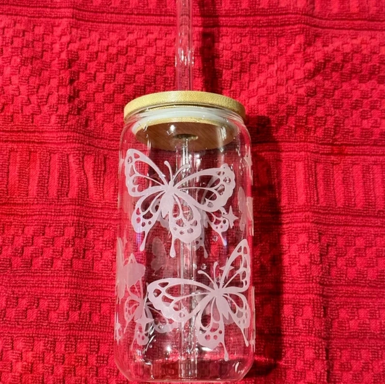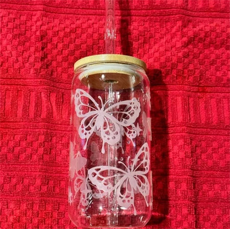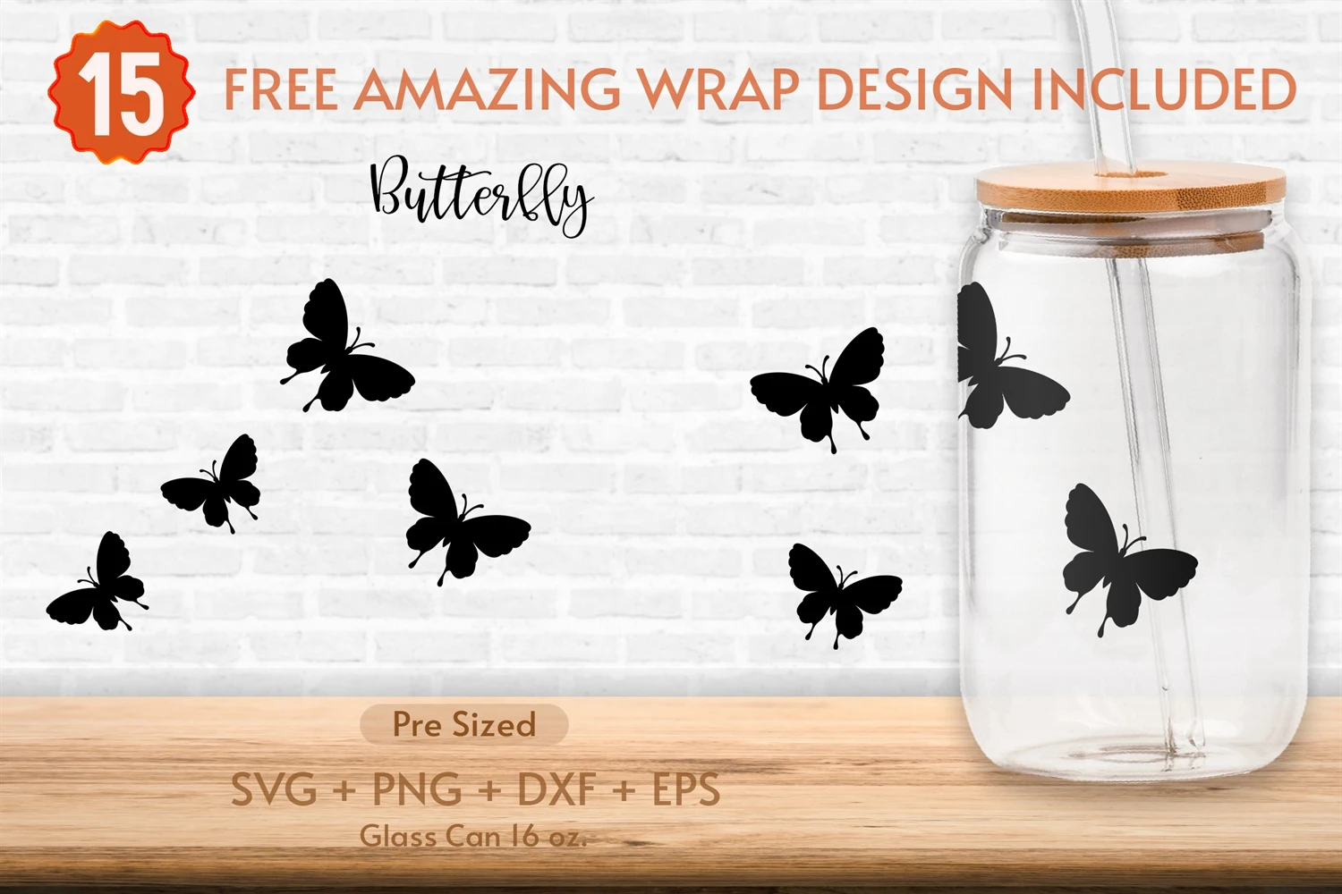 16oz Butterfly Libbey Glass Can Svg, Glass Can Full Wrap Svg