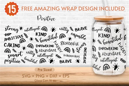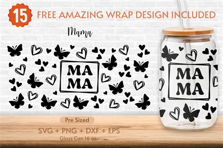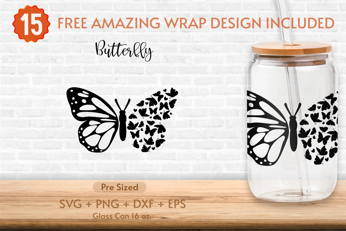 16oz Butterfly Libbey Glass Can Svg, Glass Can Full Wrap Svg
