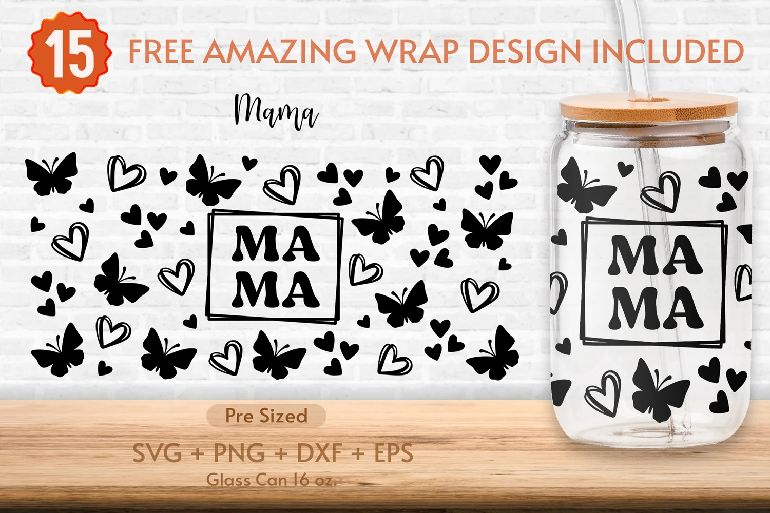 16oz Butterfly Mama Libbey Glass Can Svg, Butterflies Glass