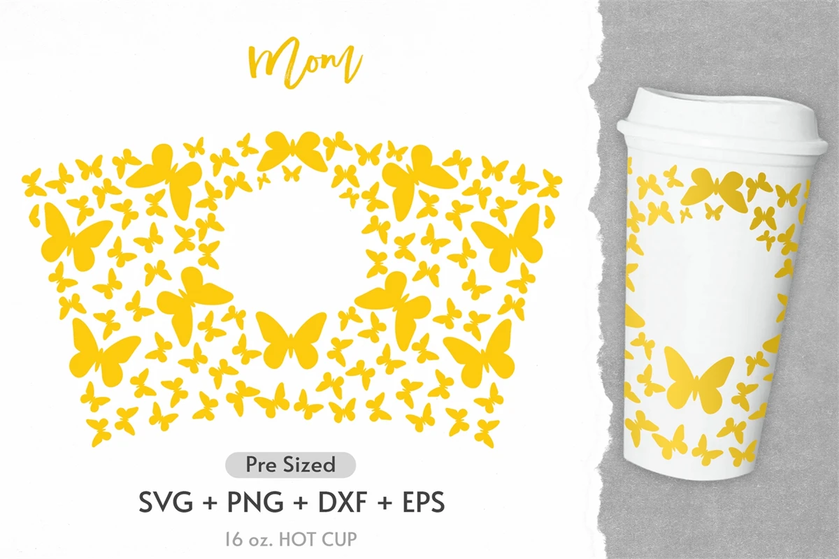 16oz Butterfly Starbucks Hot Cup Svg, Butterflies Svg, Png