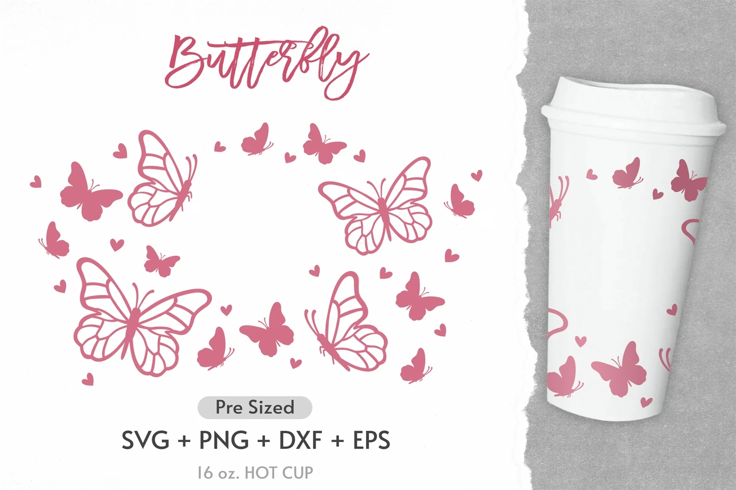 16oz Butterfly Starbucks Hot Cup Svg, Butterfly flowers Svg
