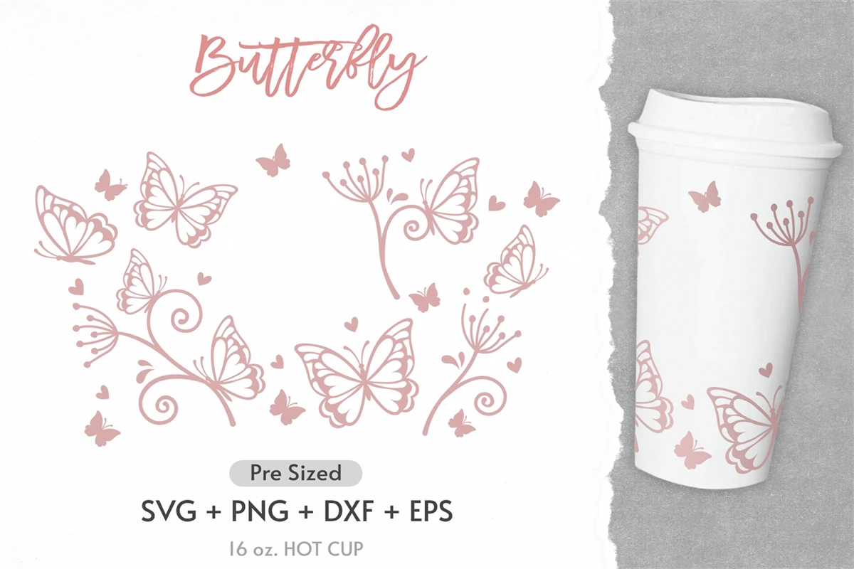 16oz Butterfly Starbucks Hot Cup Svg, Butterfly flowers Svg