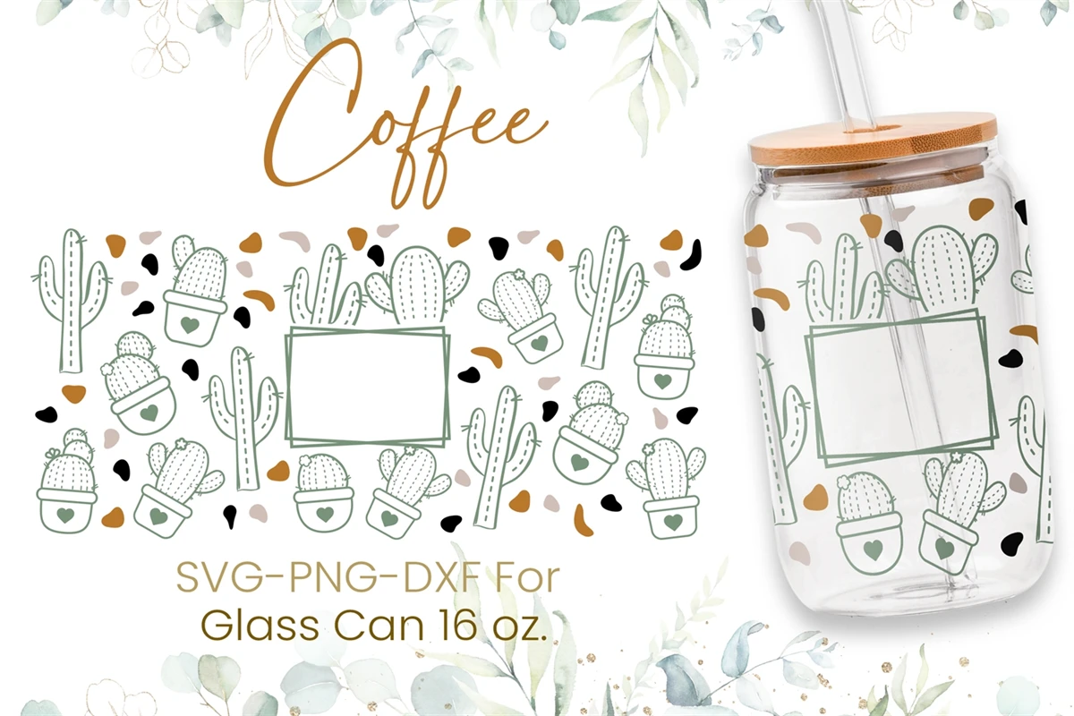 16oz Cactus Heart Libbey Glass Can Svg, Desert Boho Svg, Png