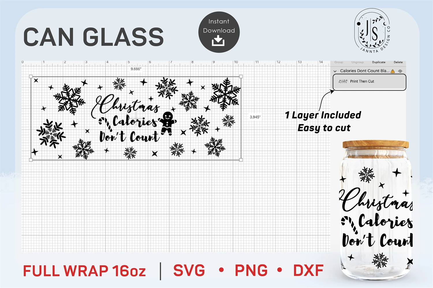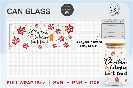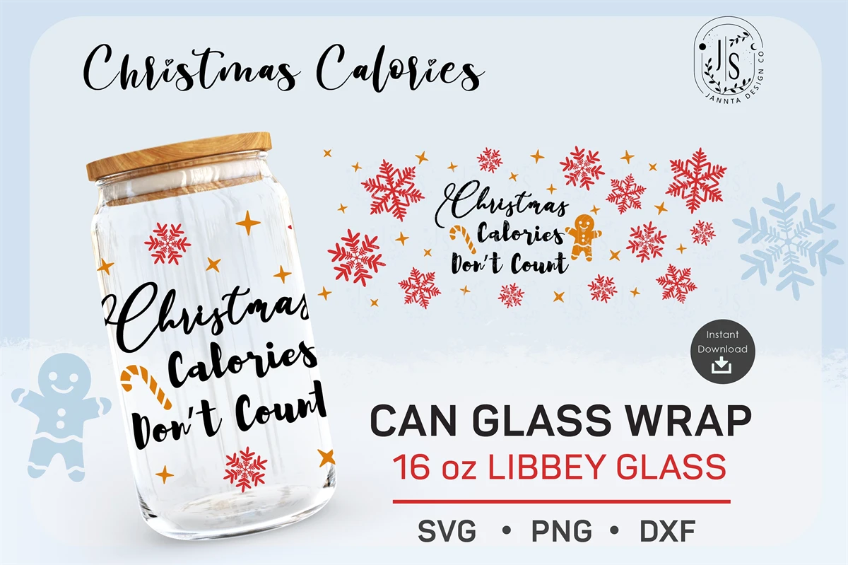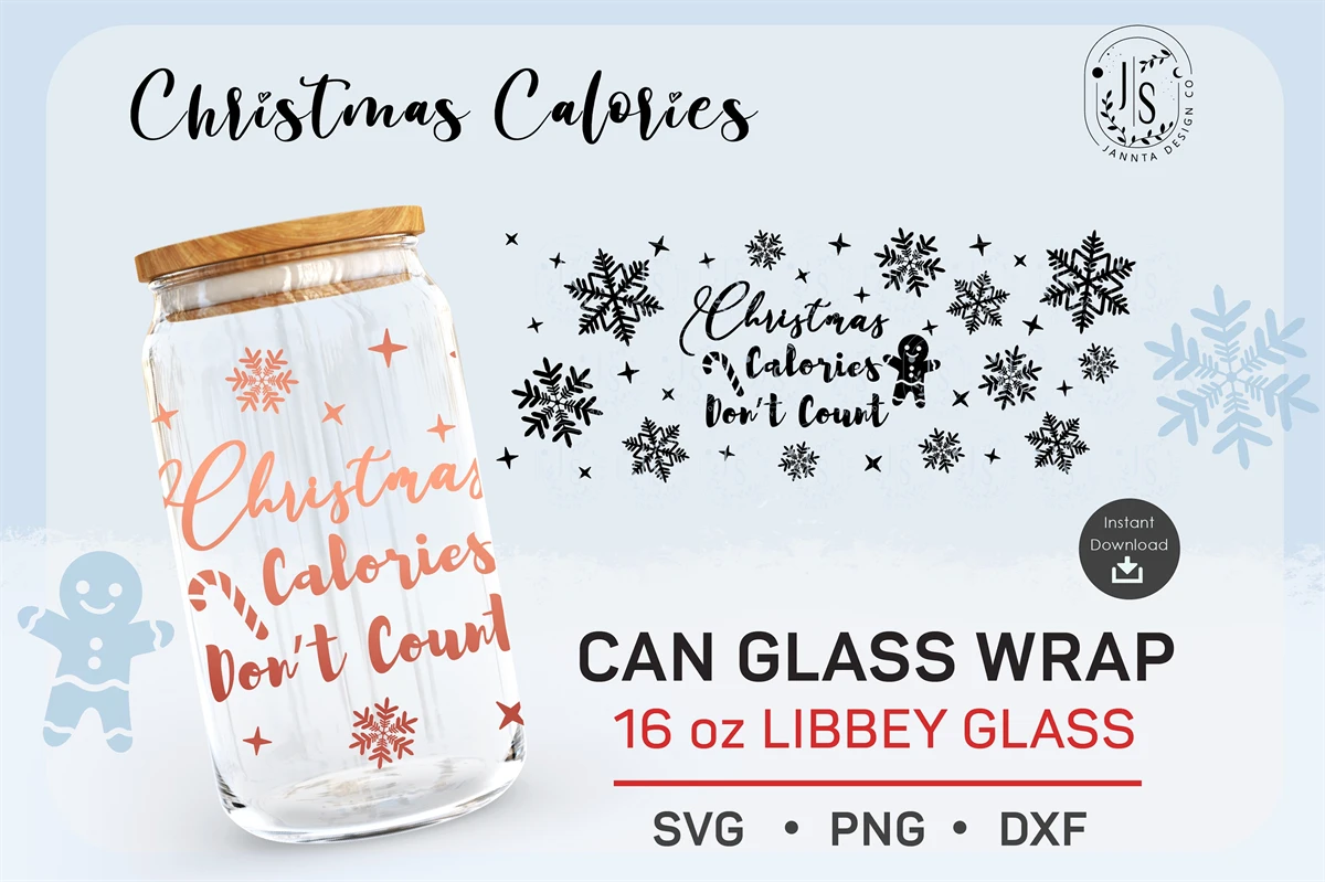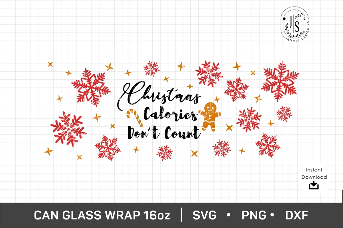 16oz, Calories Don't Count, Cookies Gingerbread, Christmas SVG, Snowflakes SVG, Can glass wrap SVG, Iced Coffee Glass, SVG files for Cricut, SVG, Iced Coffee Glass, SVG files for Cricut, Libbey beer glass, wrap SVG, SVG files, WRAP TEMPLATE, Full Wrap for Can Glass, Seamless Wraps, PNG Digital Download Template