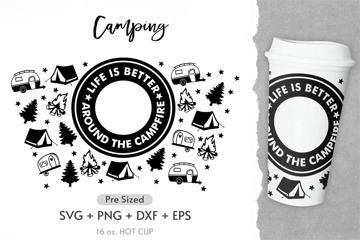 16oz Camping Starbucks Hot Cup Svg, Full Wrap Camping Crew
