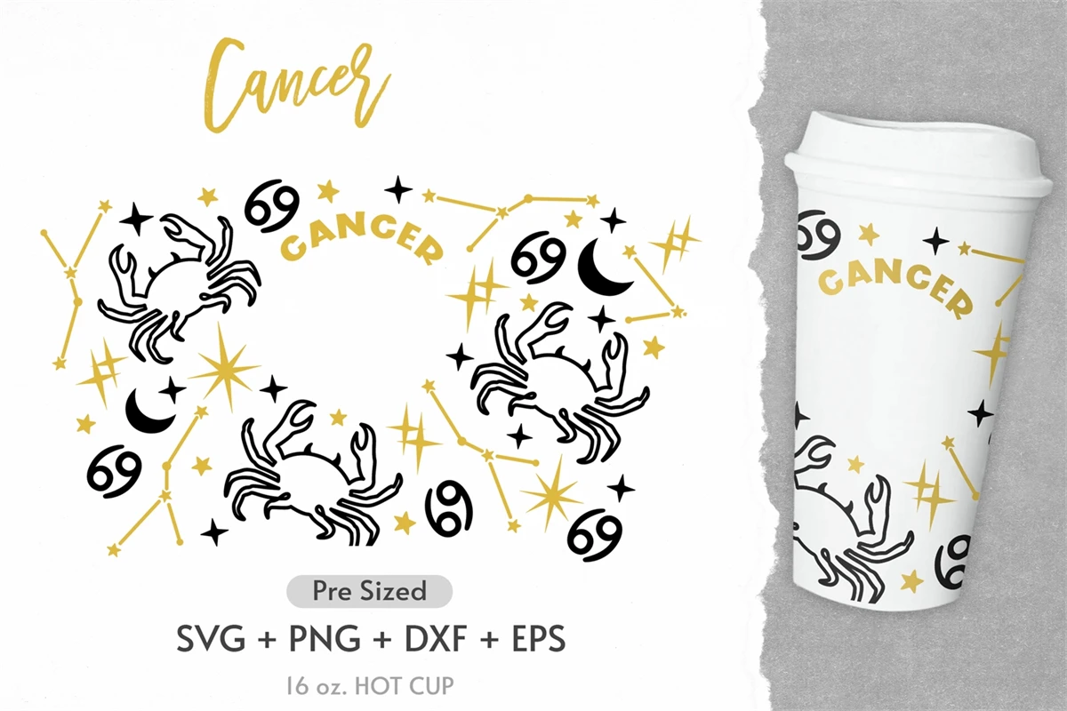 16oz Cancer Starbucks Hot Cup Svg, Zodiac Sign Svg, Dxf,Png