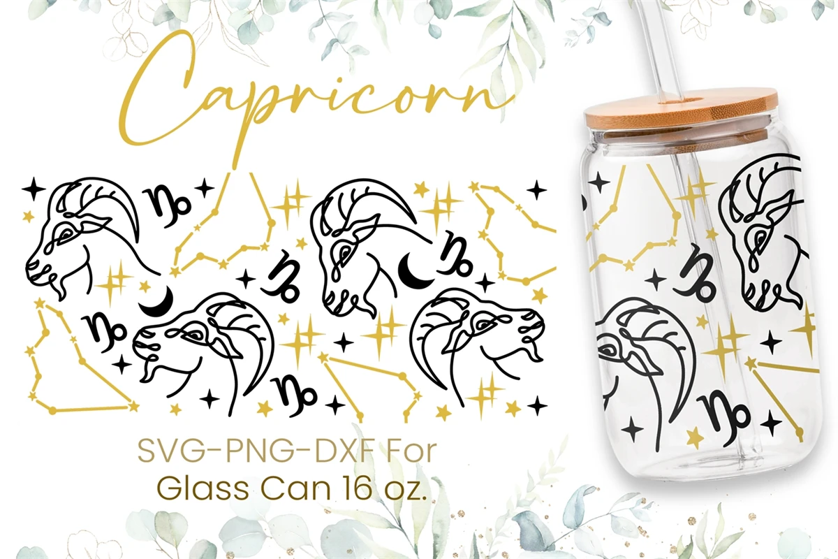 16oz Capricorn Libbey Glass Can Svg, Zodiac Svg, Astrology