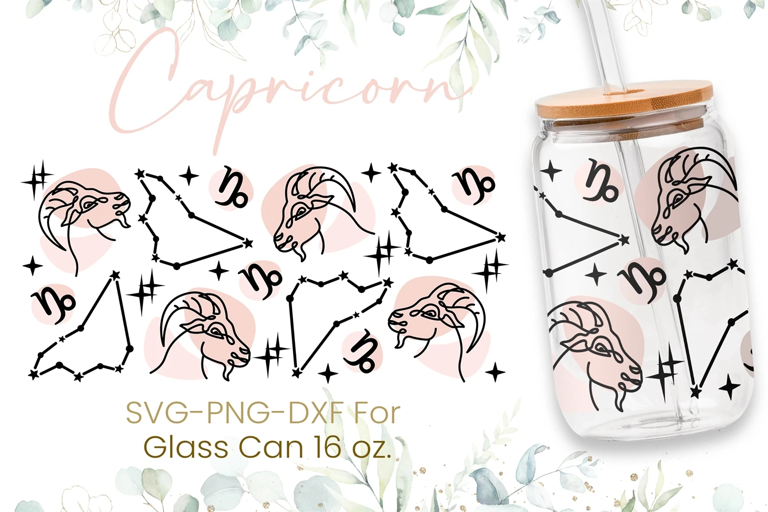 16oz Capricorn Libbey Glass Can Svg, Zodiac Svg, Astrology