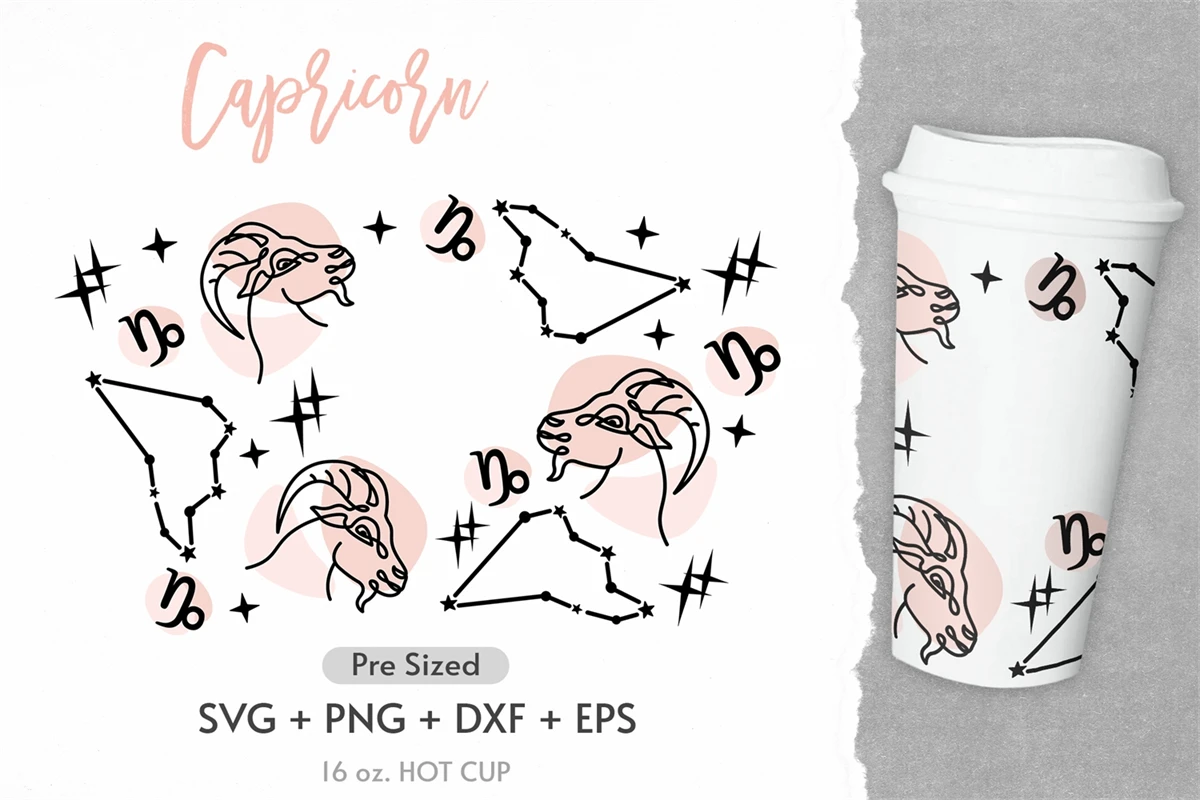 16oz Capricorn Starbucks Hot Cup Svg, Full Wrap Hot Cup Svg