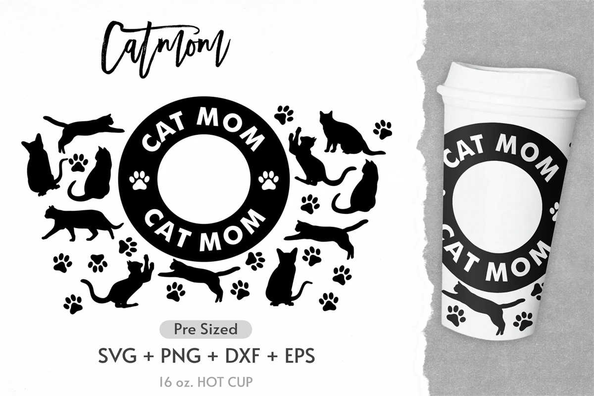 16oz Cat Mom Starbucks Hot Cup Svg, Full Wrap Svg, Mom DIY