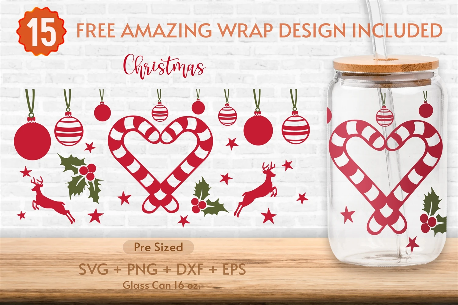 16oz Christmas Libbey Glass Can Svg, Beer Can Glass Svg