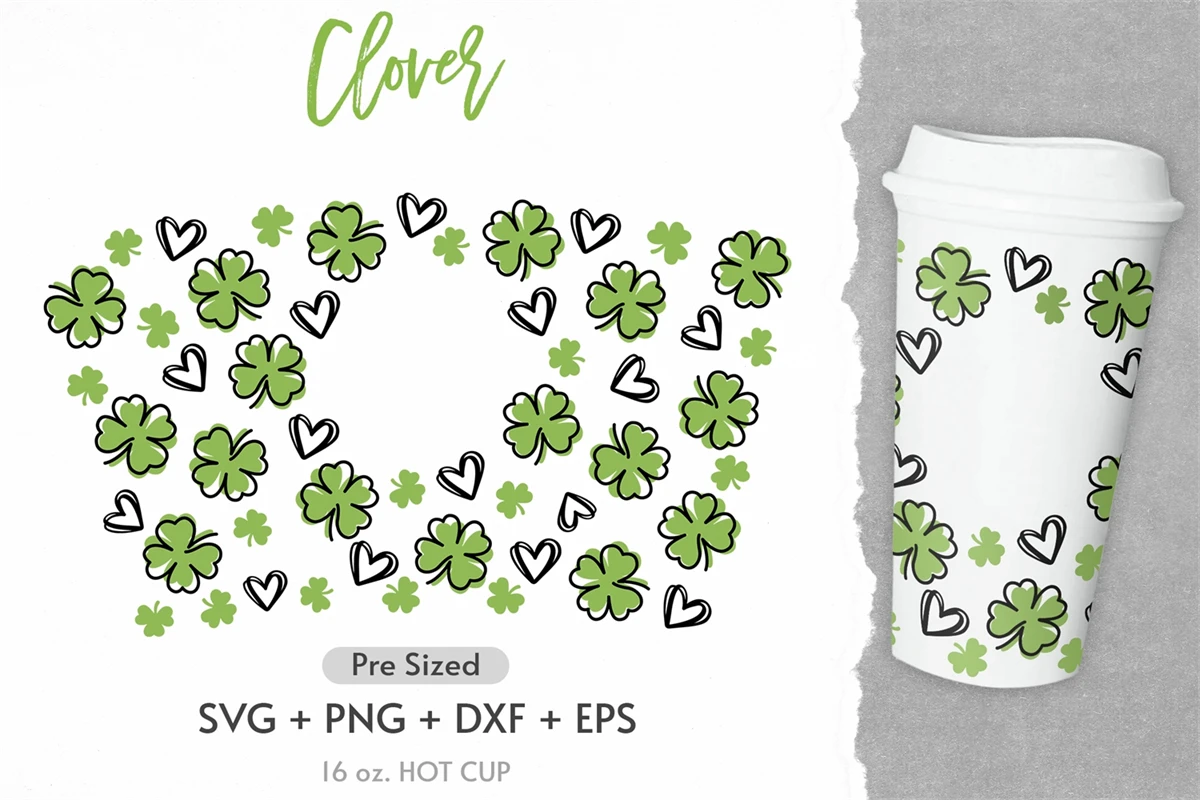 16oz Clover Leaf Starbucks Hot Cup Svg, St Patrick's Day Svg