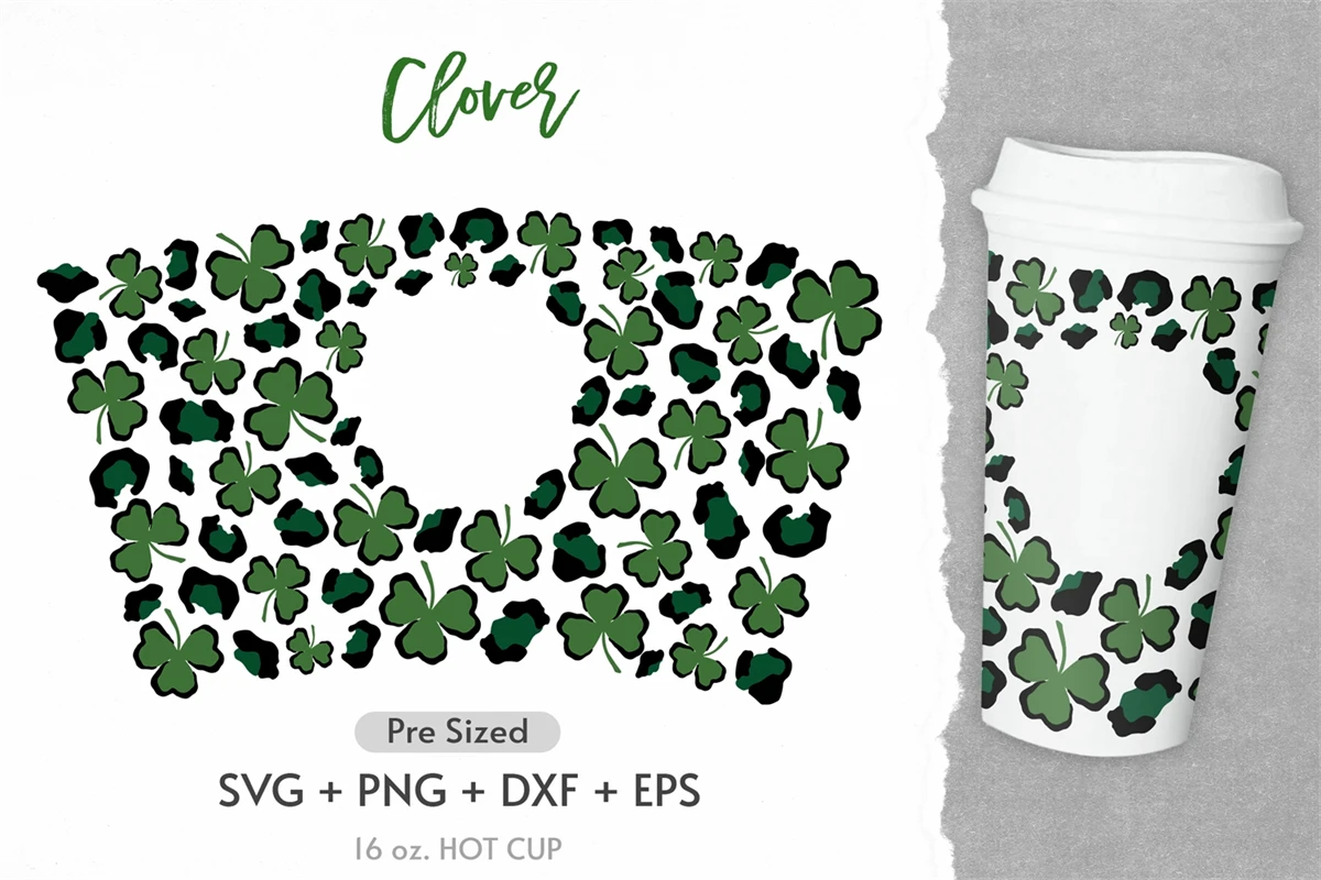 16oz Clover Leaf Starbucks Hot Cup Svg, St Patrick's Day,Png
