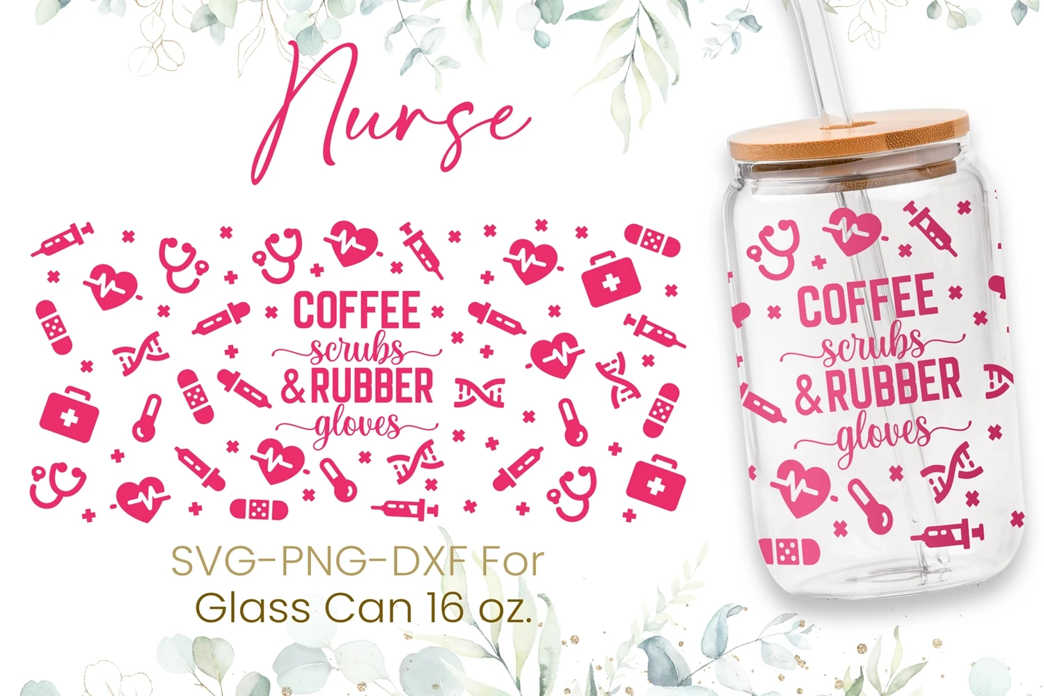 16oz Coffee Scrubs & Rubber Gloves Libbey Glass Can Svg, Png