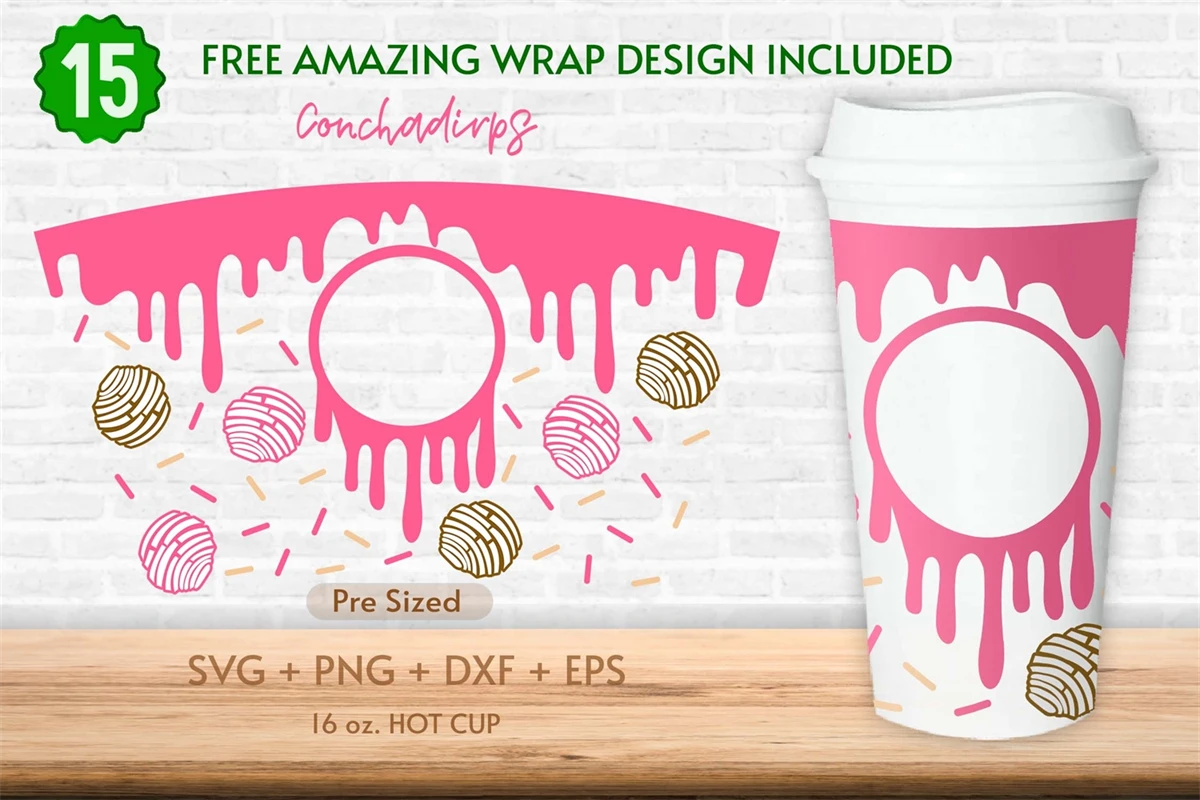 16oz Concha Drips Starbucks Hot Cup Svg,Concha Svg,Donut Svg