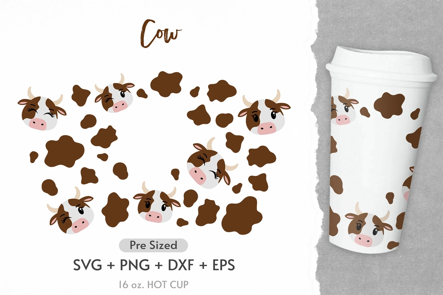 16oz Cow Head Starbucks Hot Cup Svg, Cow Pattern Svg,Cow Svg