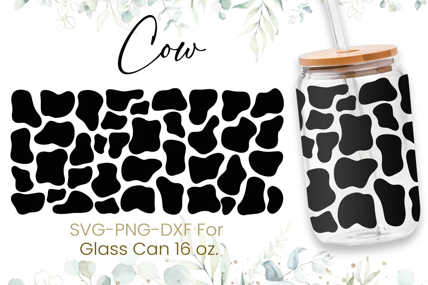 16oz Cow Pattern Libbey Glass Can Svg, Cow Svg, Animal Svg